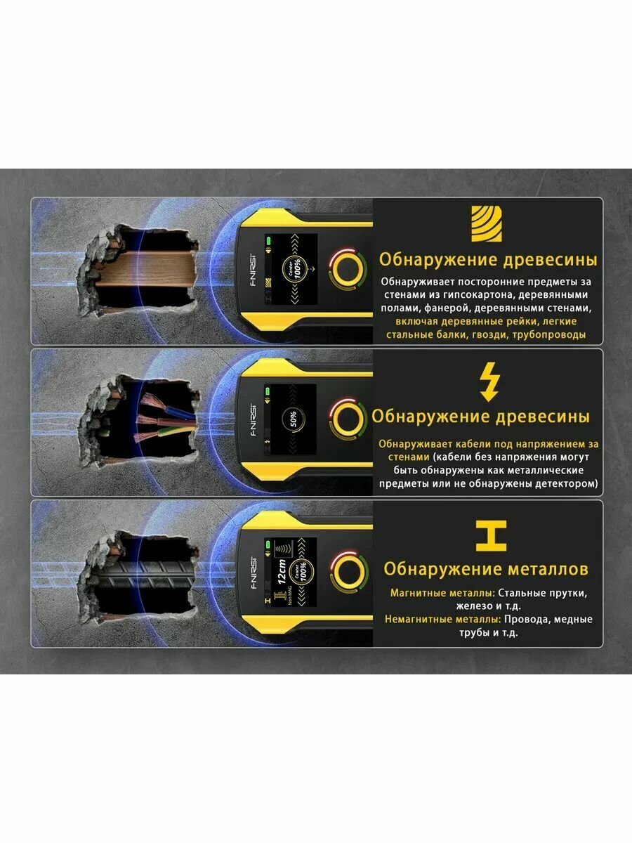 TH(610)-UE (Z62227ED) - индикатор-детектор проводки и металла 3 в 1, поиск-индикатор кабеля в стене. Автоматическая калибровка