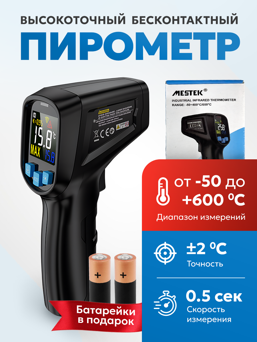 Пирометр Mestek-600, инфракрасный, бесконтактный, для кулинарии, строительства информация:
