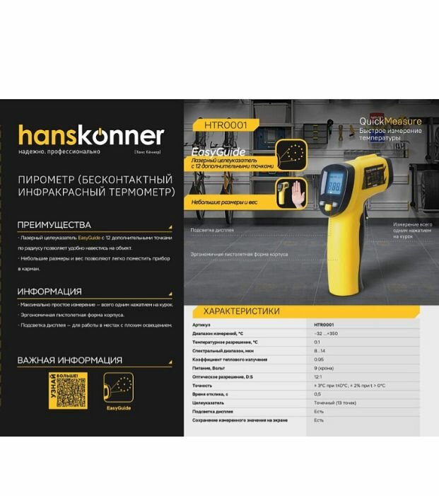 Пирометр Hanskonner HTR0001 (диапозон измерений -32.+350гр, точность +/-2гр, 140*80*38мм) информация: