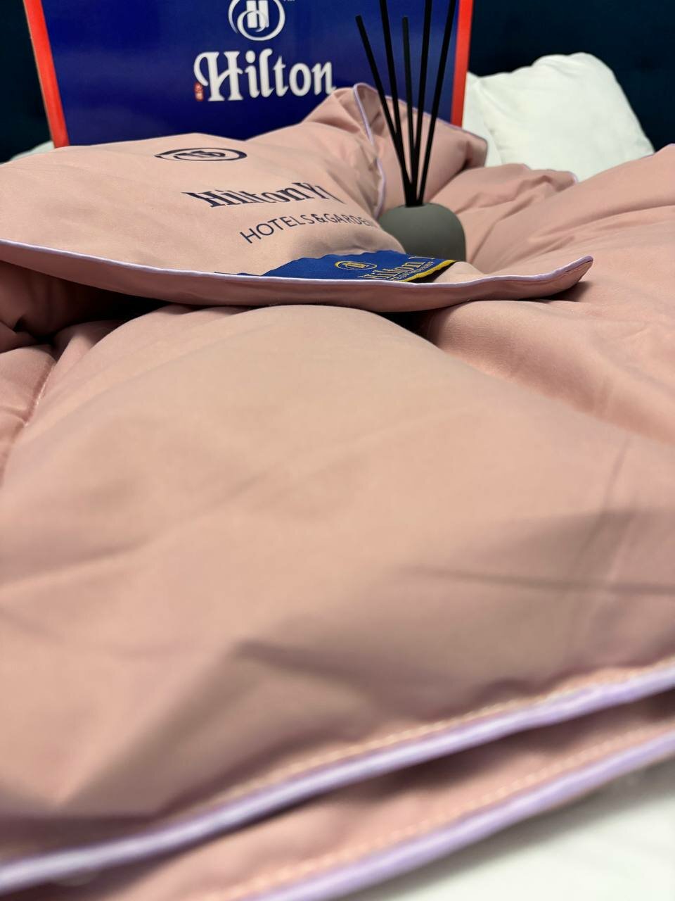 Одеяло Hilton, лебяжий пух, 180х220, стеганое, сатин, всесезонное, как в отеле 7 500 ₽