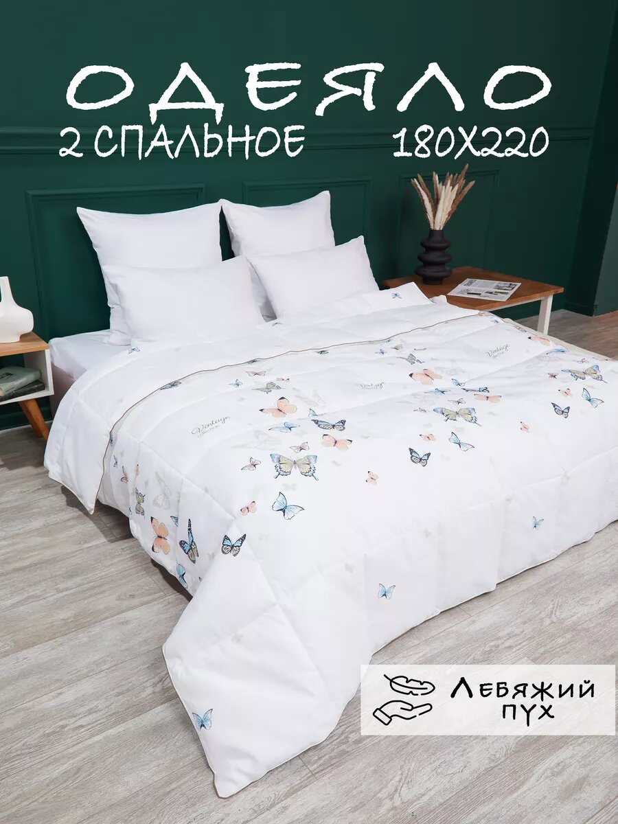 Одеяло DeluxeComfort Лебяжий Пух, 2 спальное 180x220, 300г/м2, 2 спальных, всесезонное, белое, пышное информация: