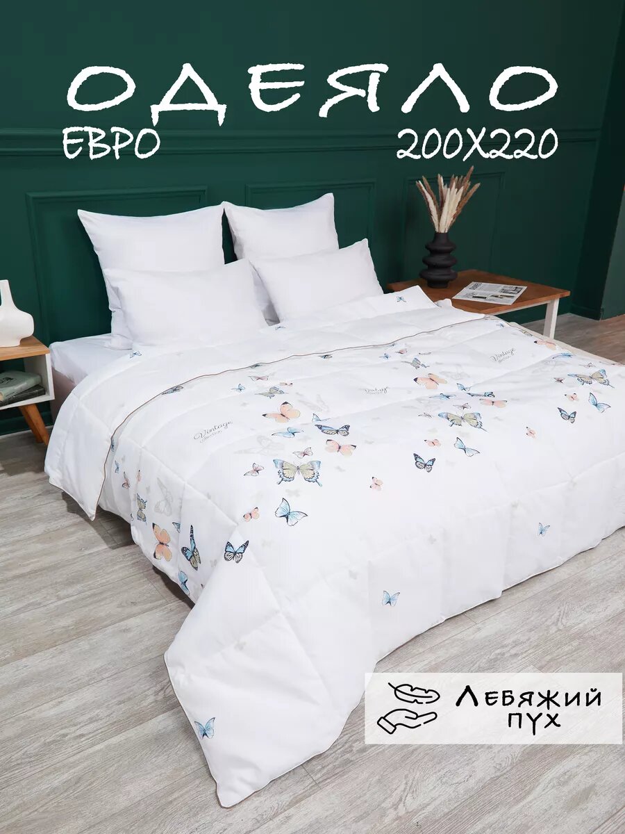 Одеяло DeluxeComfort Лебяжий Пух евро, 200x220, белое, с узором бабочки, зимнее информация: