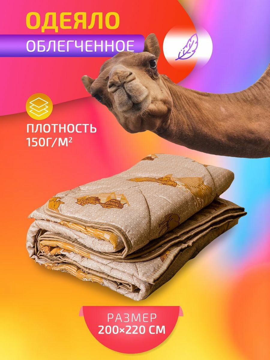 10 цен на Одеяло демисезонное евро 200х220 см облегченное верблюжья шерсть (200/220, 200 на 220)