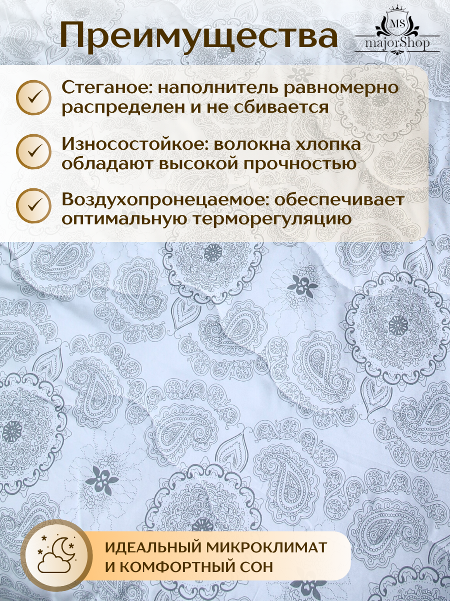 Двуспальное одеяло 175х205 см, облегченное, "Хлопок", легкое информация: