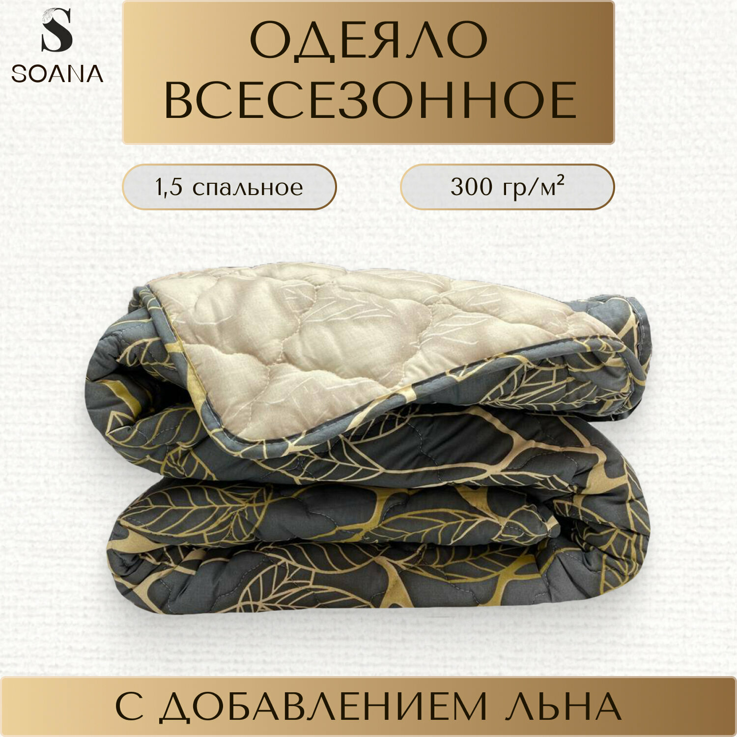 Одеяло SOANA, лен, 1,5 спа, гипоаллергенное, всесезонное, 142х205см информация: