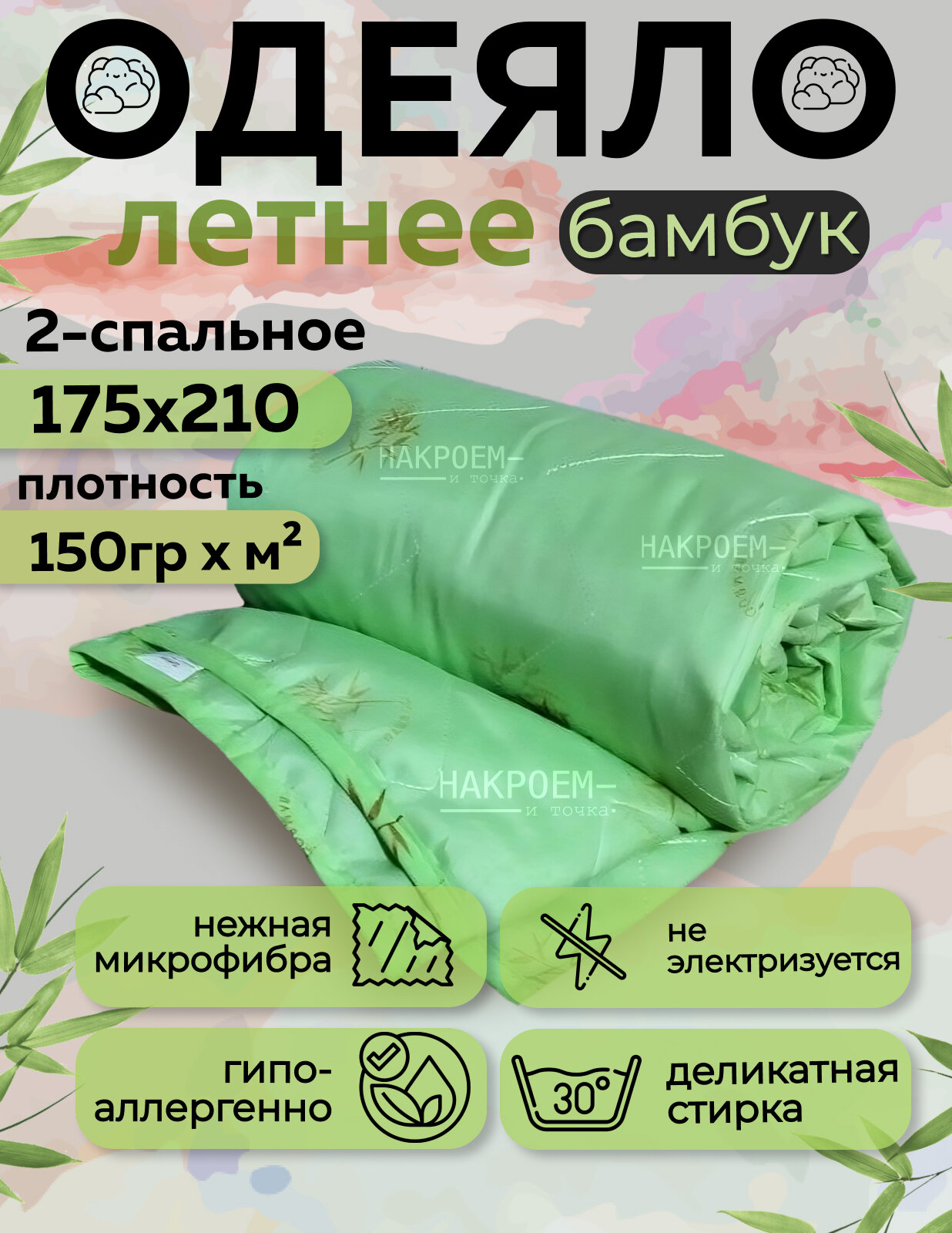 Одеяло летнее облегченное двуспальное 175х210 наполнитель бамбуковое волокно информация: