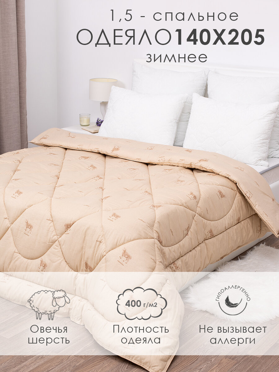 Одеяло "Овечья шерсть" облегченное, Евро размер, в поплексе, плотность 150 г/м2