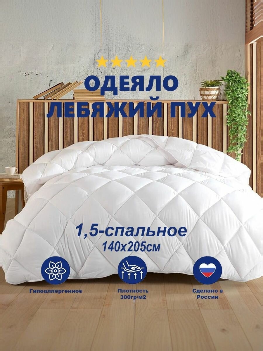 Одеяло всесезонное 140х205 см, лебяжий пух, 300гр/м2 / одеяло кассетного типа для отелей и гостиниц информация:
