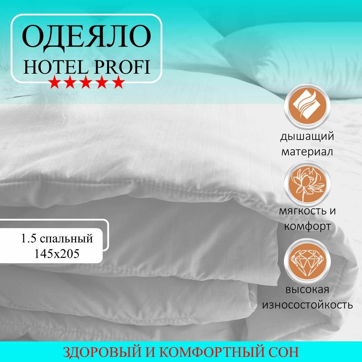 Одеяло 1.5 спальное 145х205, всесезонное, гипоаллергенное информация: