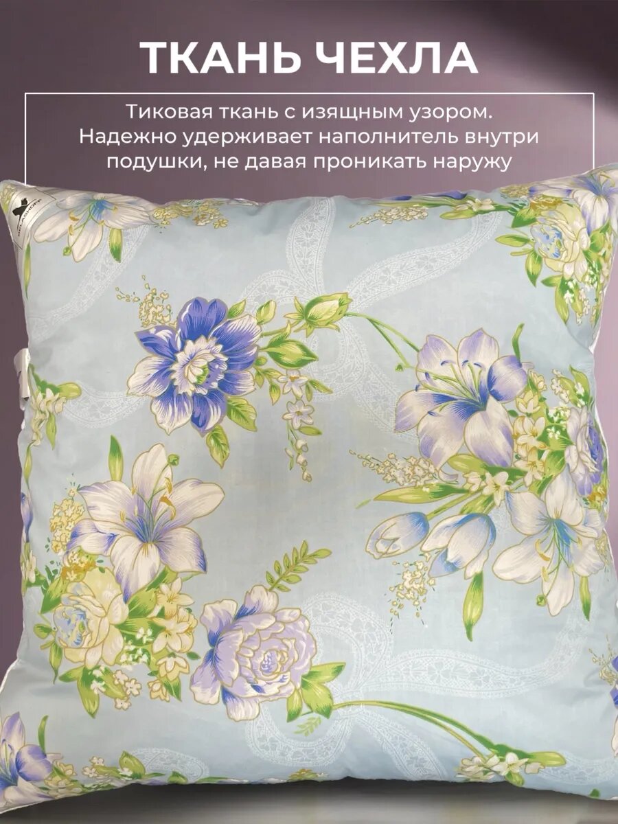 Подушка M-textile 70 x 70, гипоаллергенная, натуральная, с цветочным кантом 1 050 ₽
