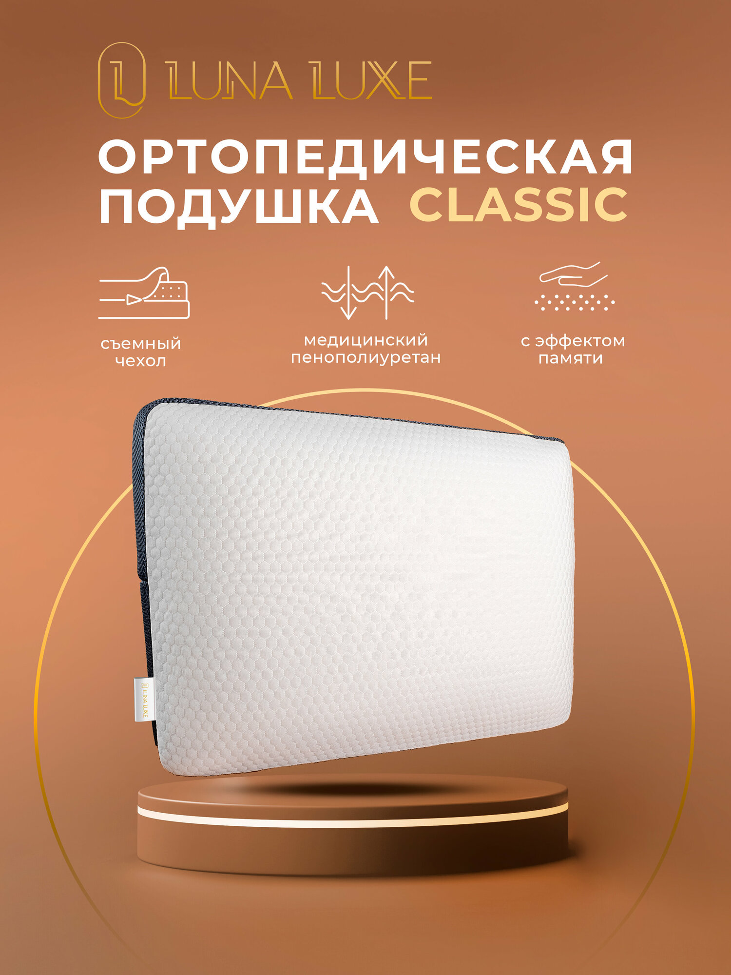 Анатомическая ортопедическая подушка с эффектом памяти Luna Luxe для сна 60х40 см информация: