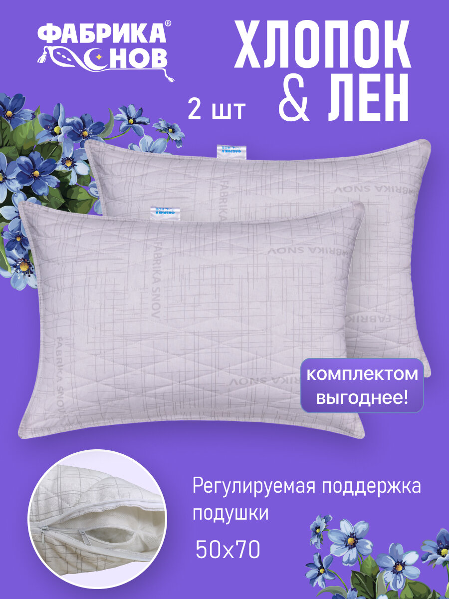 10 цен на Подушки Хлопок&Лён 50 x 70 набор 2шт, с волокнами льна, искусственный пух, стеганая