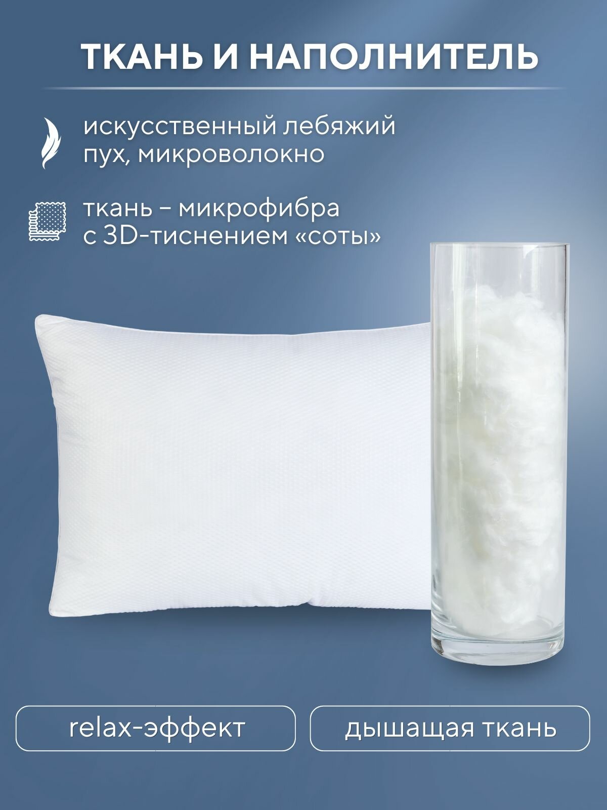 10 цен на Подушка 50х70 см, для сна, Антистресс, гипоаллергенная, средней поддержки