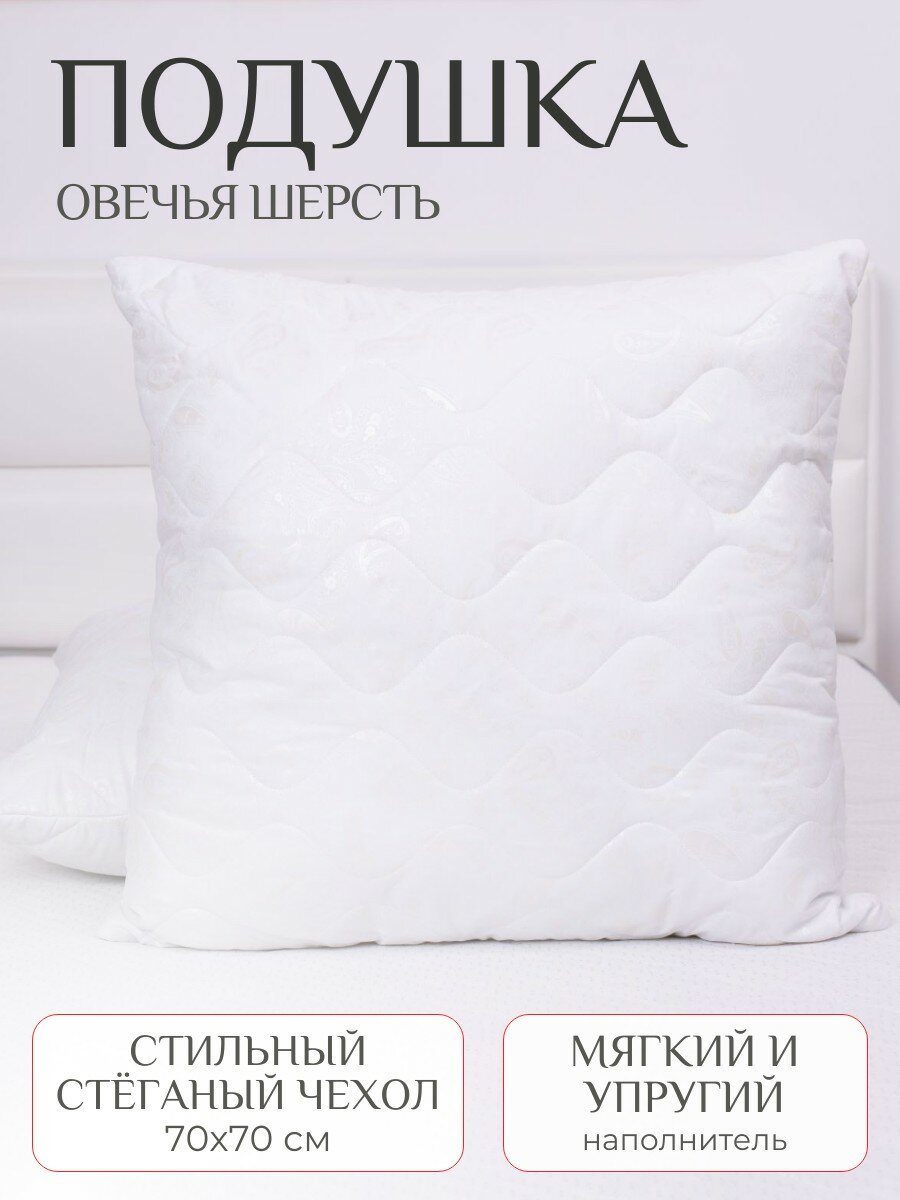 Подушка Миланика "Комфорт", 70x70 см, гипоаллергенная, овечья шерсть информация: