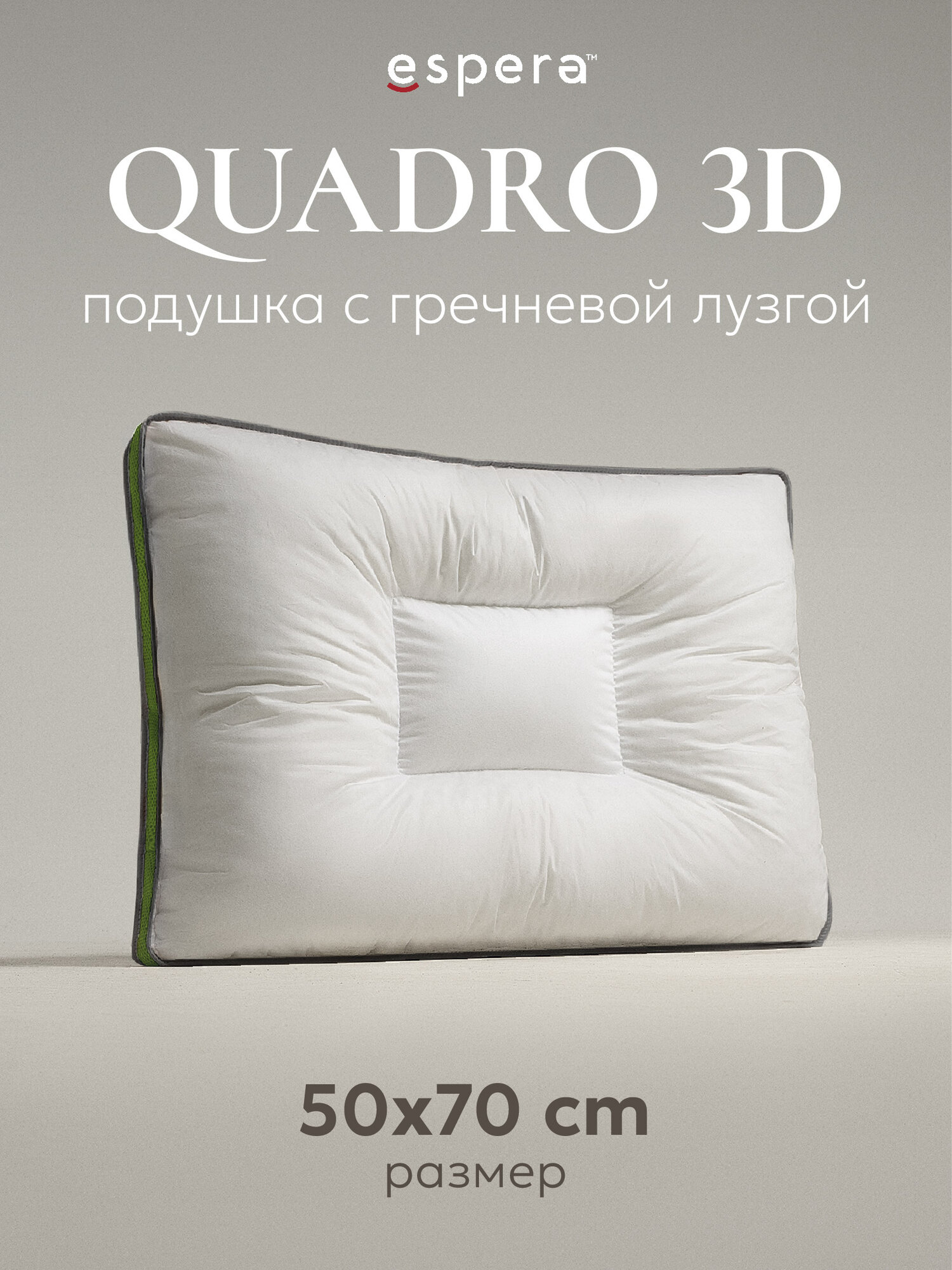 Отзывы на Подушка ESPERA "QUADRO 3D" с лузгой гречихи, 50х70 см, 100% хлопок, цвет белый