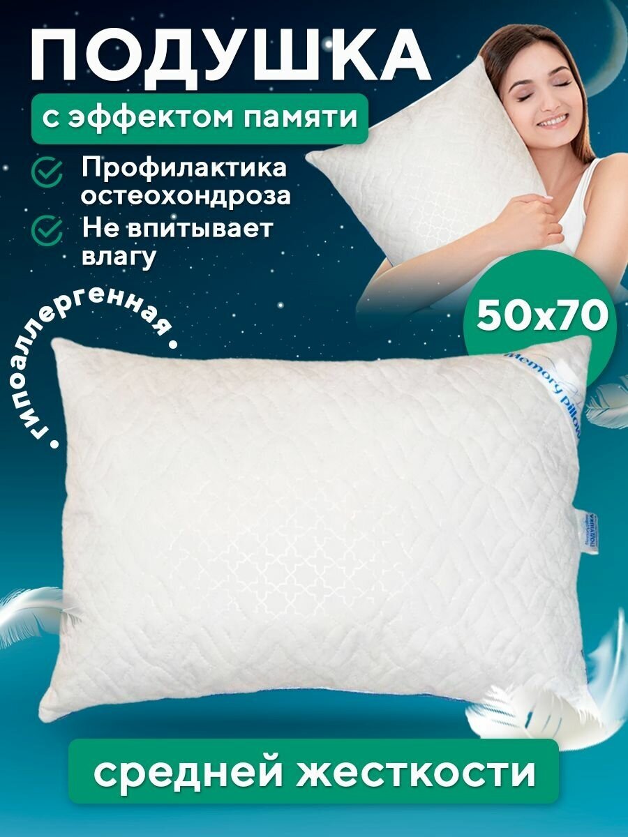 Подушка для сна с эффектом памяти 50x70, средней жесткости, белая информация: