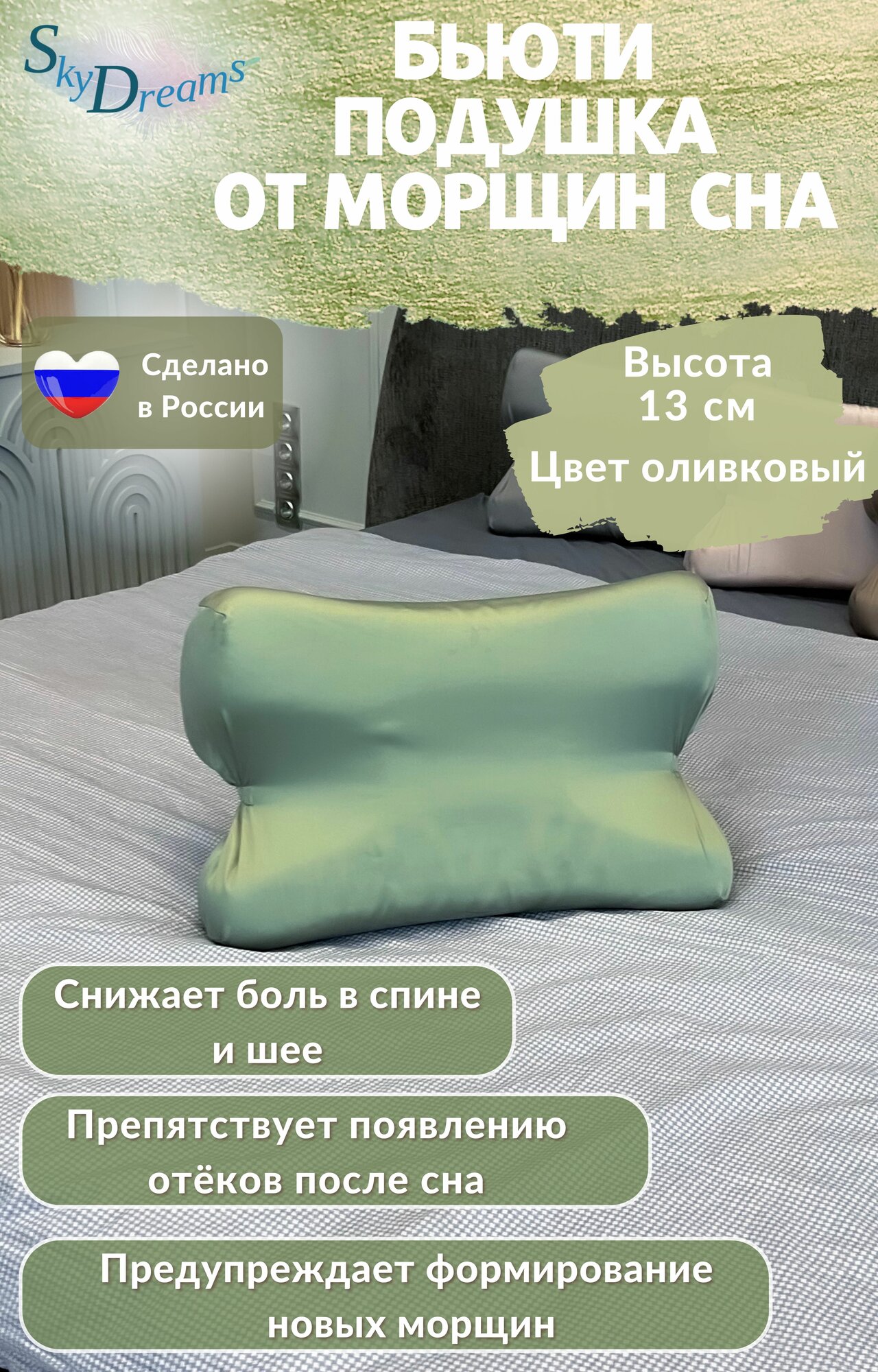 Отзывы на SkyDreams Ортопедическая бьюти подушка от морщин сна, высота 13 см, цвет оливковый