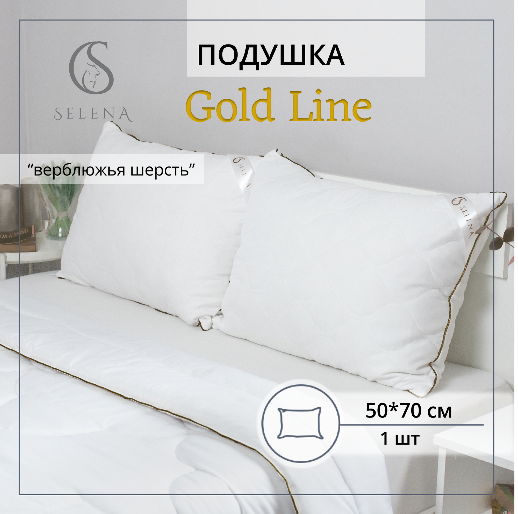 Подушка стеганая SELENA GOLD LINE 50х70 см, микрофибра, верблюжья шерсть информация: