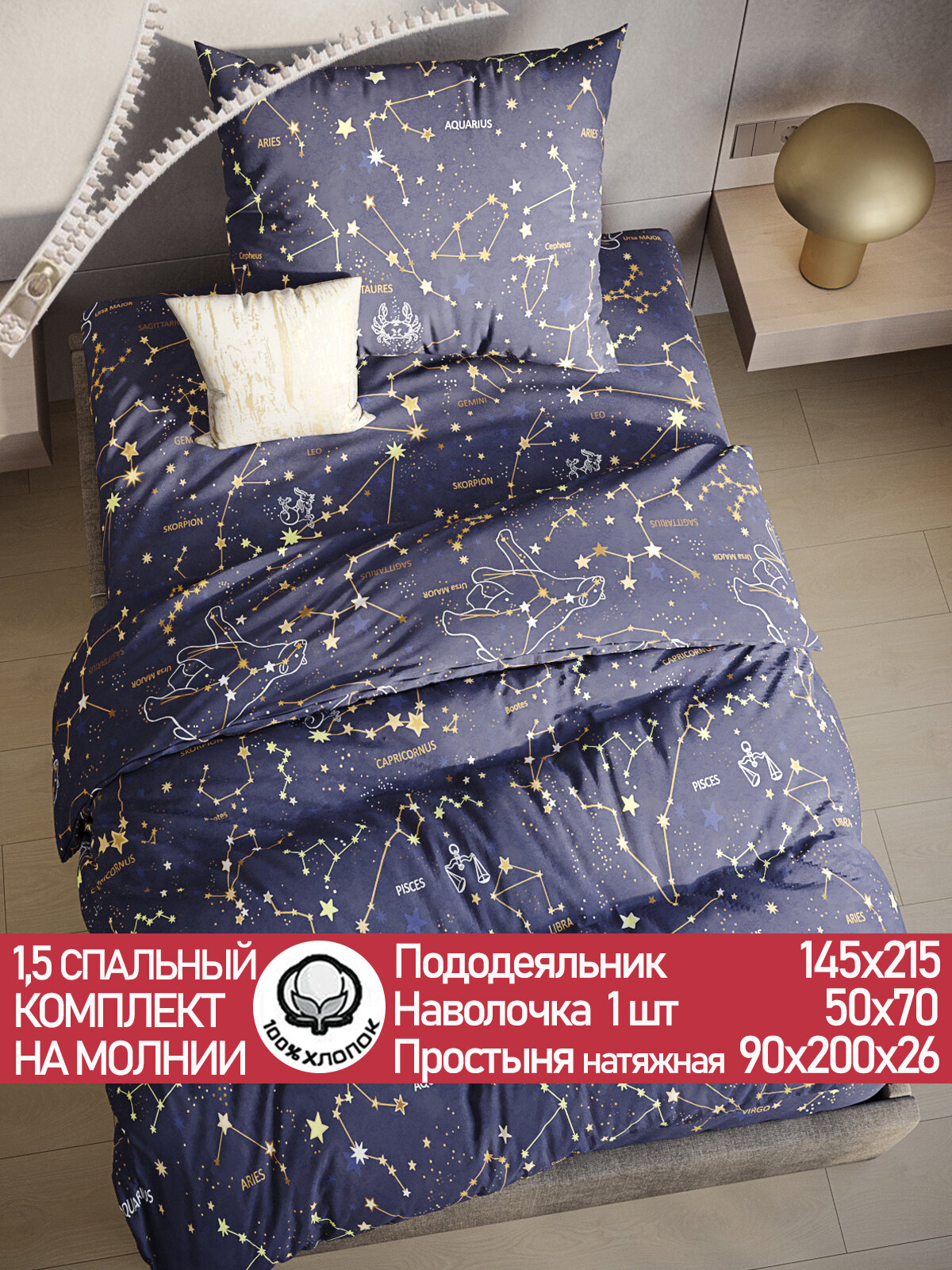 Отзывы на Постельное белье Сказка "Созвездия" 1,5-сп наволочка 50х70 1шт Простынь на резинке 90х200 см Пододеяльник 145х215 см