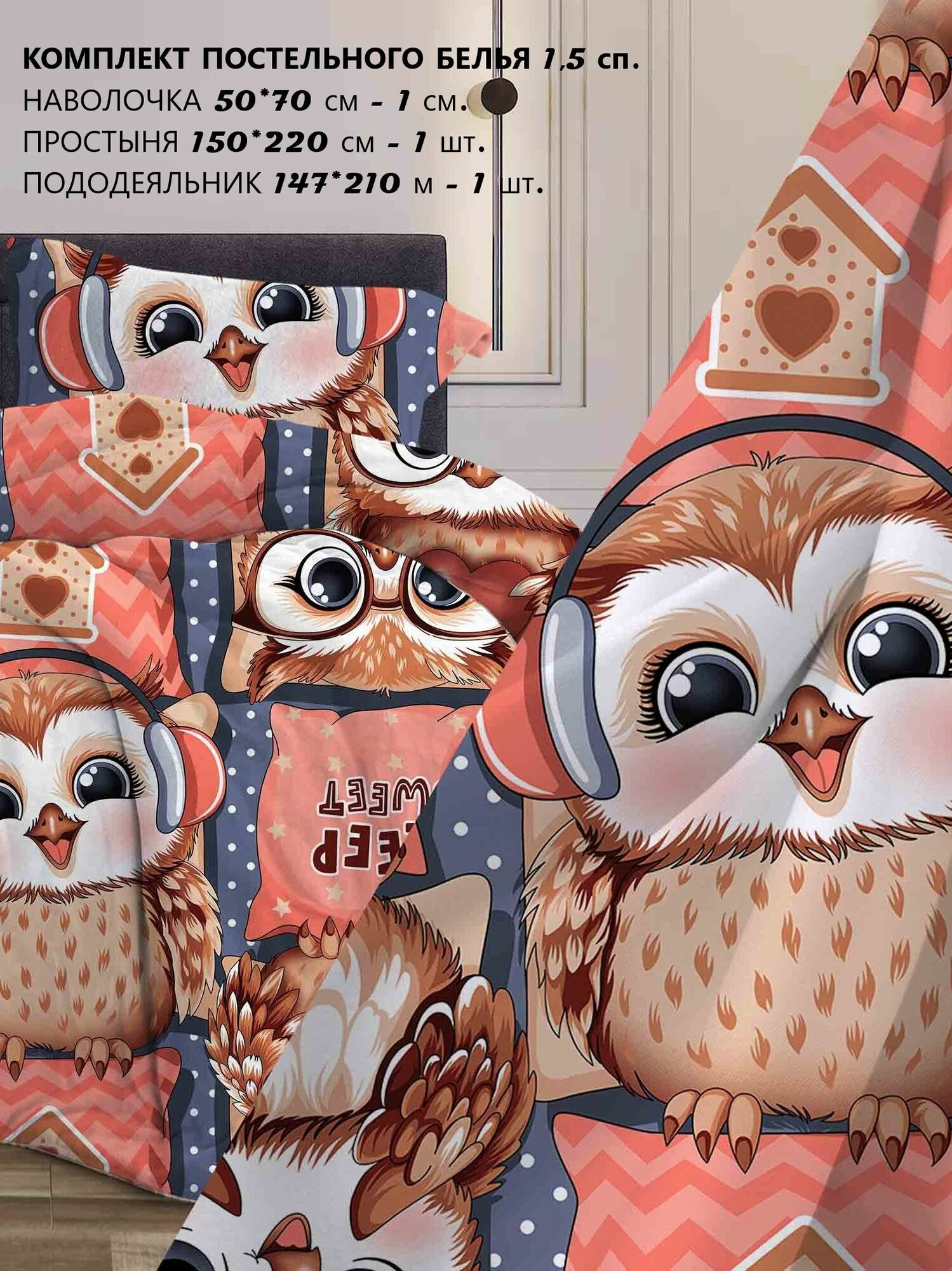 Комплект 1,5 спального постельного белья "Совиный домик" из бязи (100 % хлопок) информация: