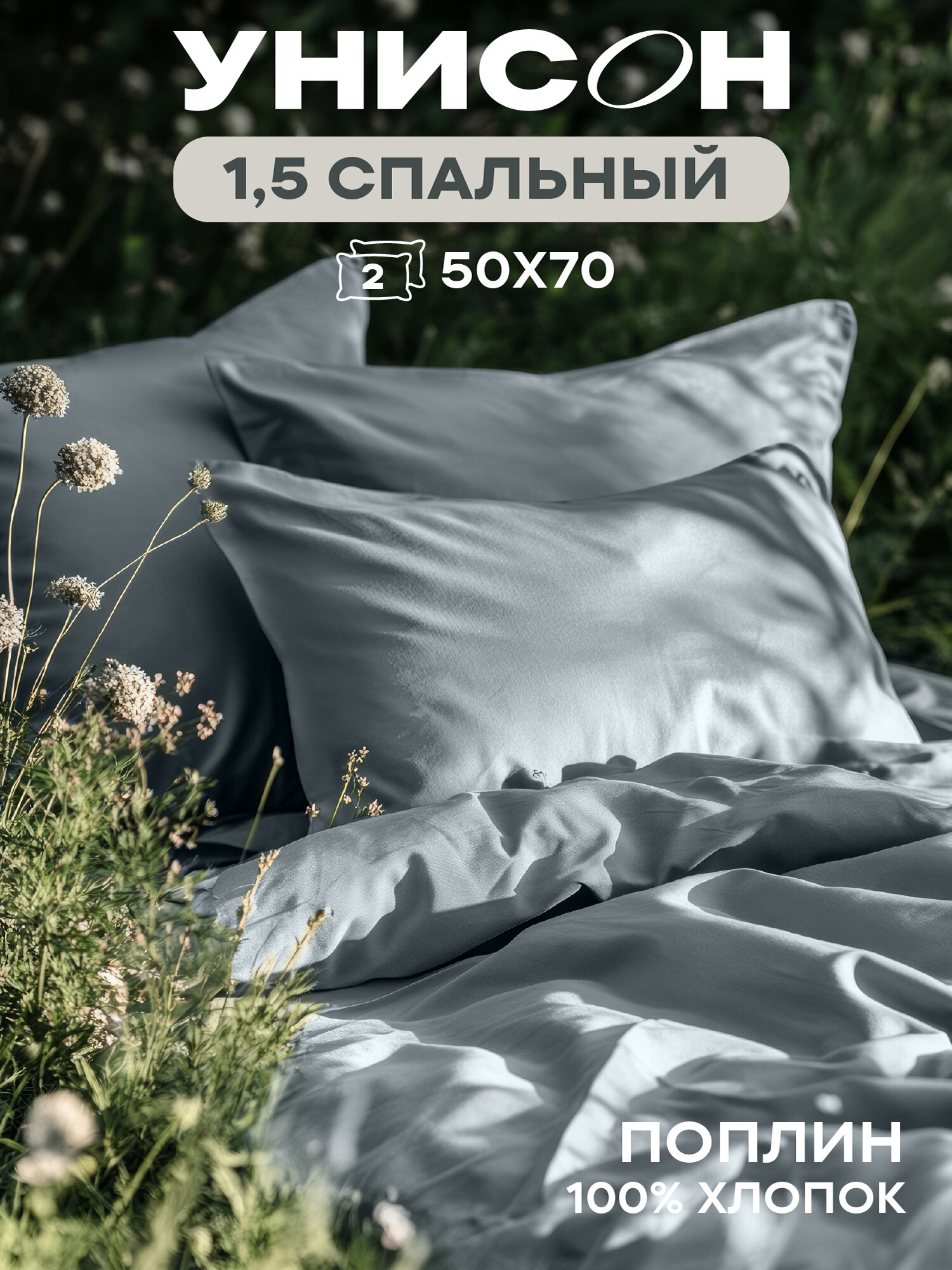 10 цен на Постельное белье 1.5 спальное Унисон, Поплин, нав. 50х70, Denim (Unicolor)