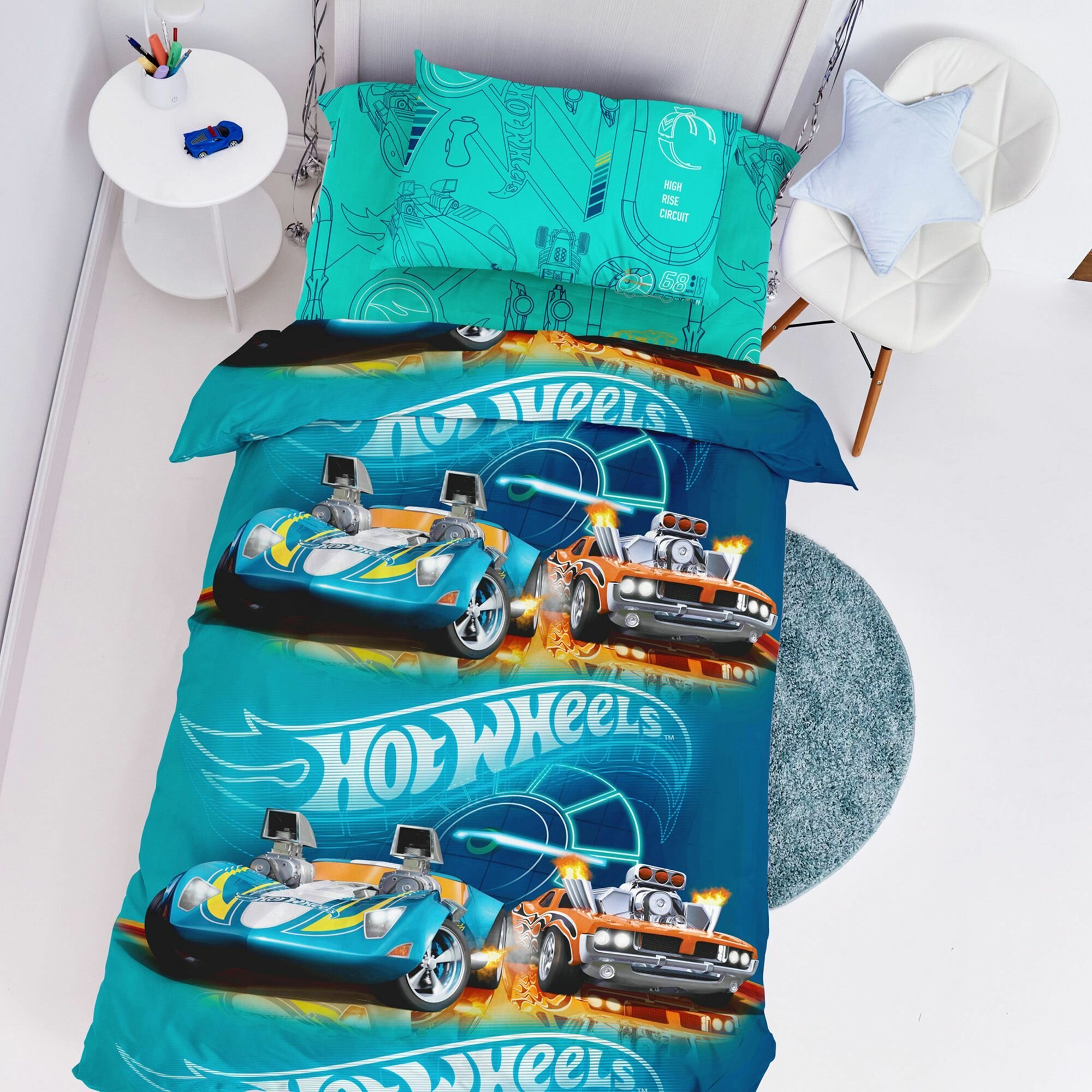 Непоседа, Комплект детского постельного белья 1 5 спальный, Поплин, 1 нав. 70х70, Hot wheels / хот вилс, скорость информация:
