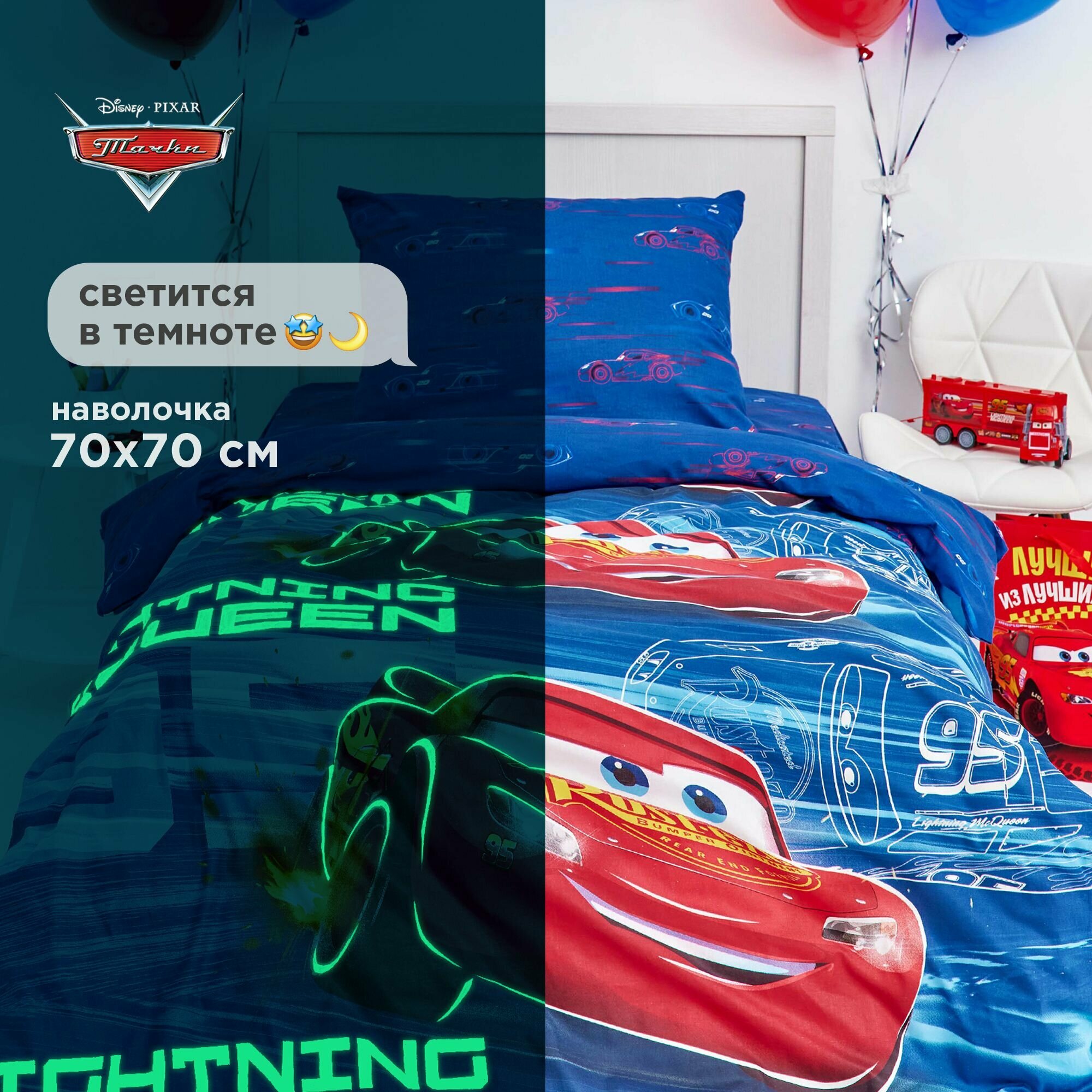Непоседа, Комплект детского постельного белья 1 5 спальный, Поплин, неон/NEON, 1 нав. 70х70, Тачки молния маккуин информация: