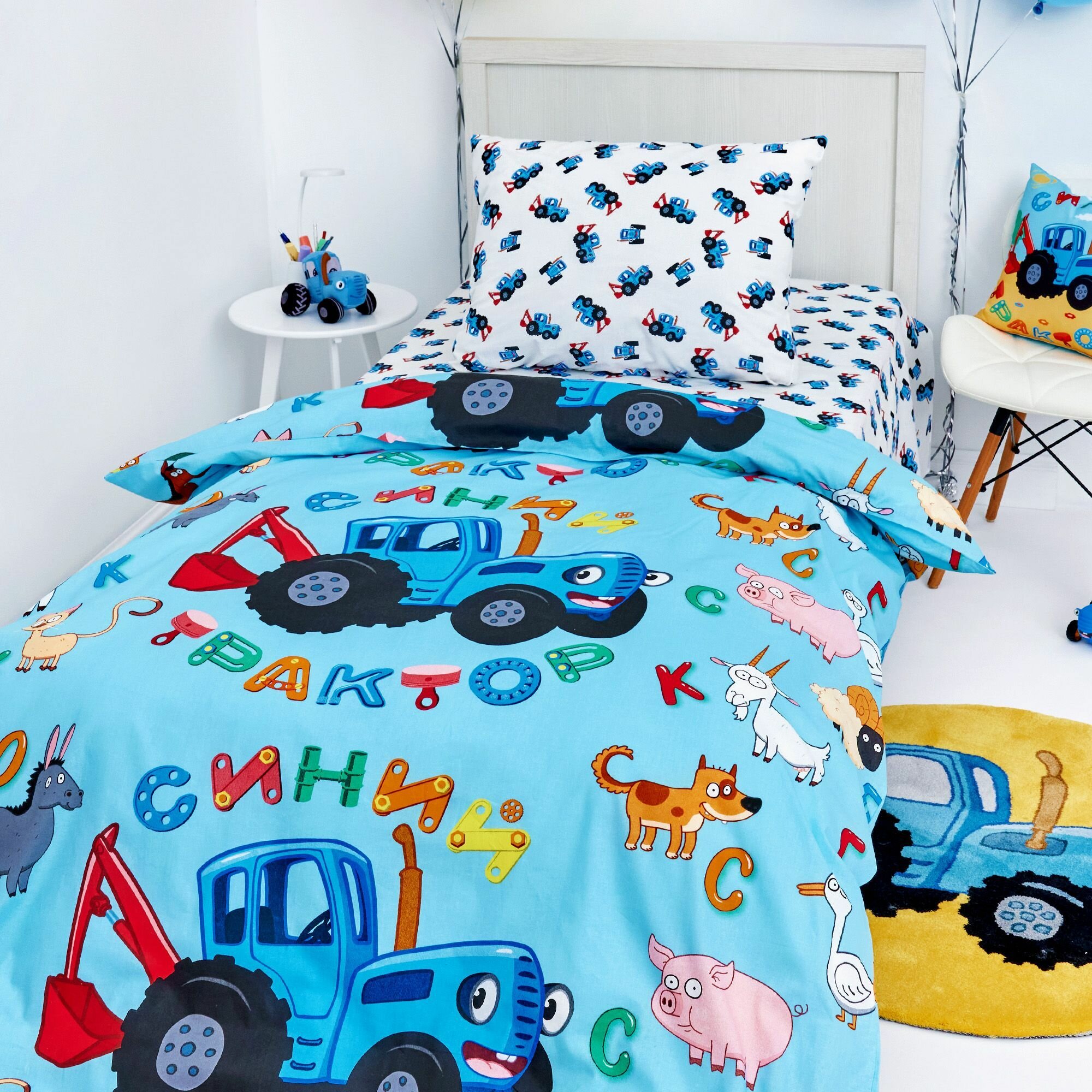 Непоседа, Комплект детского постельного белья 1 5 спальный, Поплин, 1 нав. 70х70, Синий трактор информация: