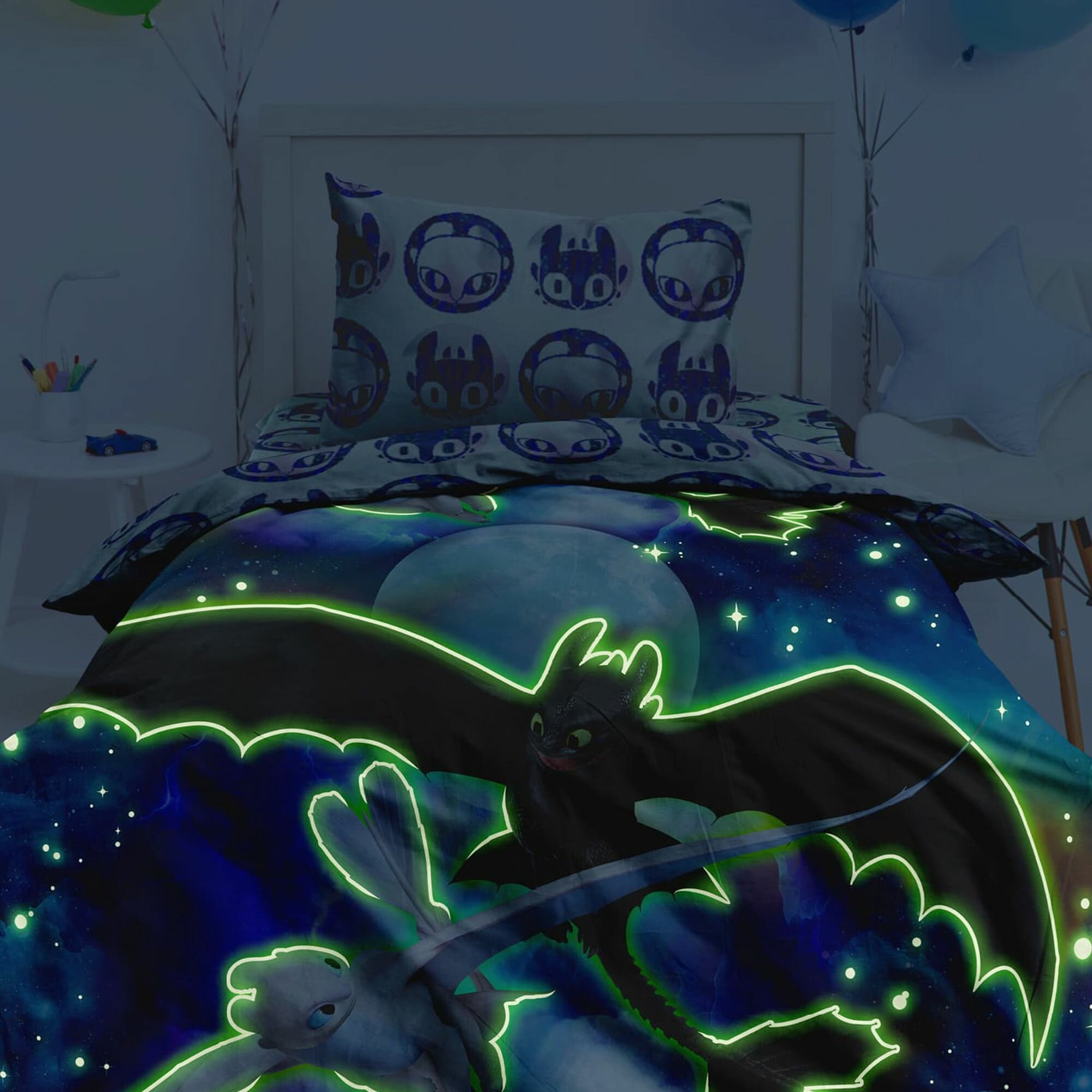 Непоседа, Комплект детского постельного белья 1 5 спальный, Поплин, неон/NEON, 1 нав. 70х70, Драконы / как приручить дракона информация: