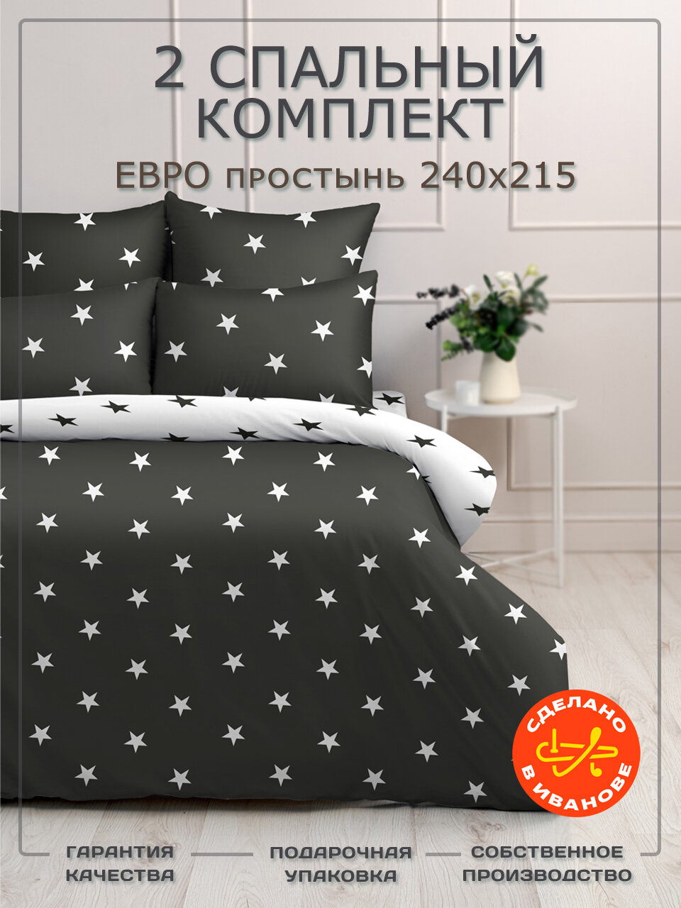 10 цен на Постельное белье 2 спальное, твил, классическая, евро простынь, наволочки 70х70