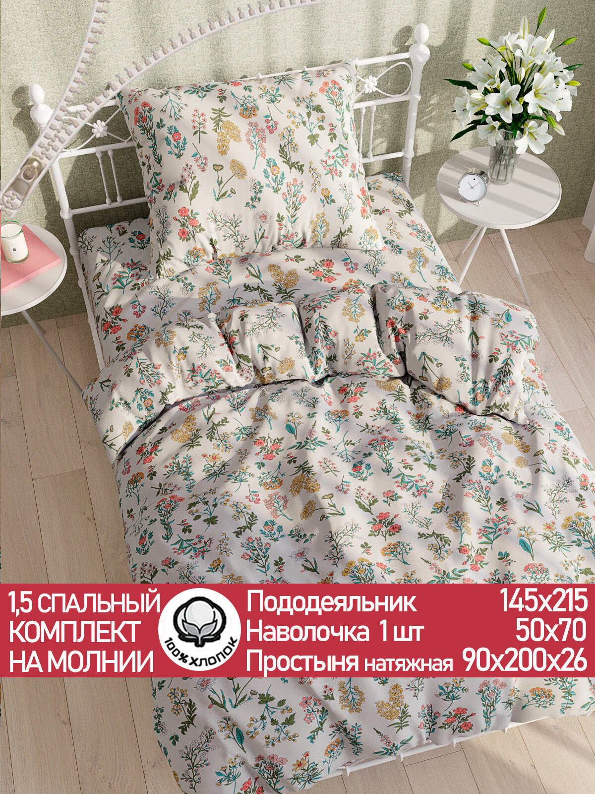 Постельное белье Сказка "Ботаника" 1,5-сп наволочка 50х70 1шт Простынь на резинке 90х200 см Пододеяльник 145х215 см информация: