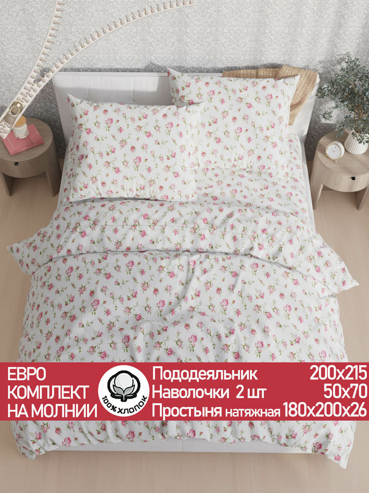 10 цен на Постельное белье Сказка "Розовые бутоны" евро наволочки 50х70 2шт Простынь на резинке 180х200 см Пододеяльник 200х215 см