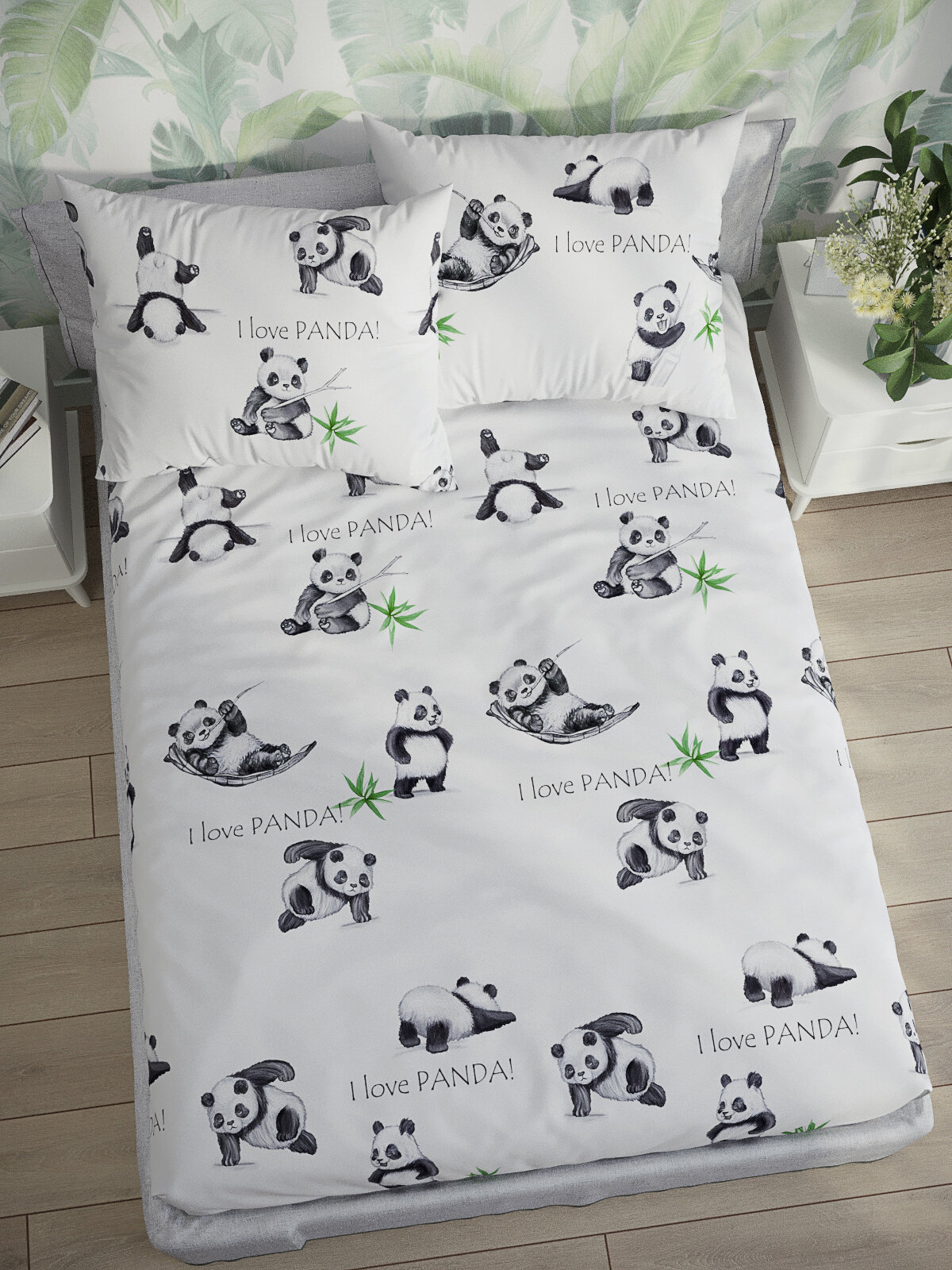 Постельное белье Сказка "Панды" евро наволочки 50х70 2шт Простынь на резинке 180х200 см Пододеяльник 200х215 см 2 878 ₽