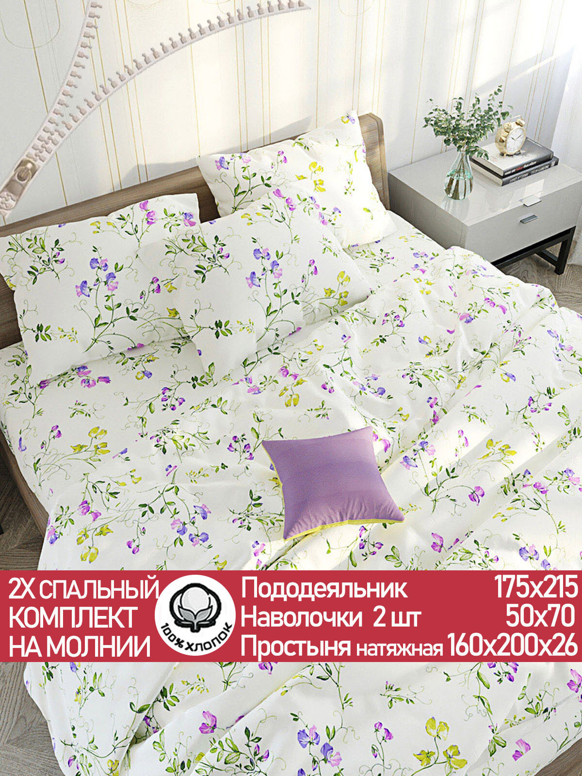 Отзывы на Постельное белье Сказка Сатин "Горошек" 2-спальный наволочки 50х70 2шт Простынь на резинке 160х200 см Пододеяльник 175х215 см