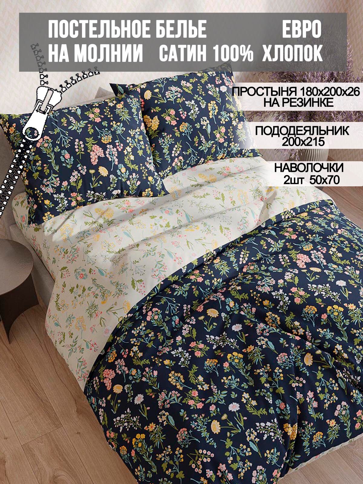 10 цен на Постельное белье сатин Milky Garden "Botany" евро, сатин, хлопок 100%, наволочка 2шт, простынь на резинке