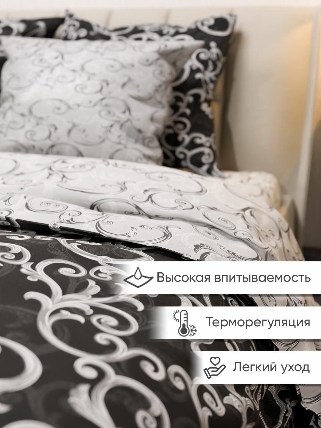 Постельное белье Сказка Сатин "Lester" 1,5-сп наволочка 50х70 1шт Простынь на резинке 90х200 см Пододеяльник 145х215 см