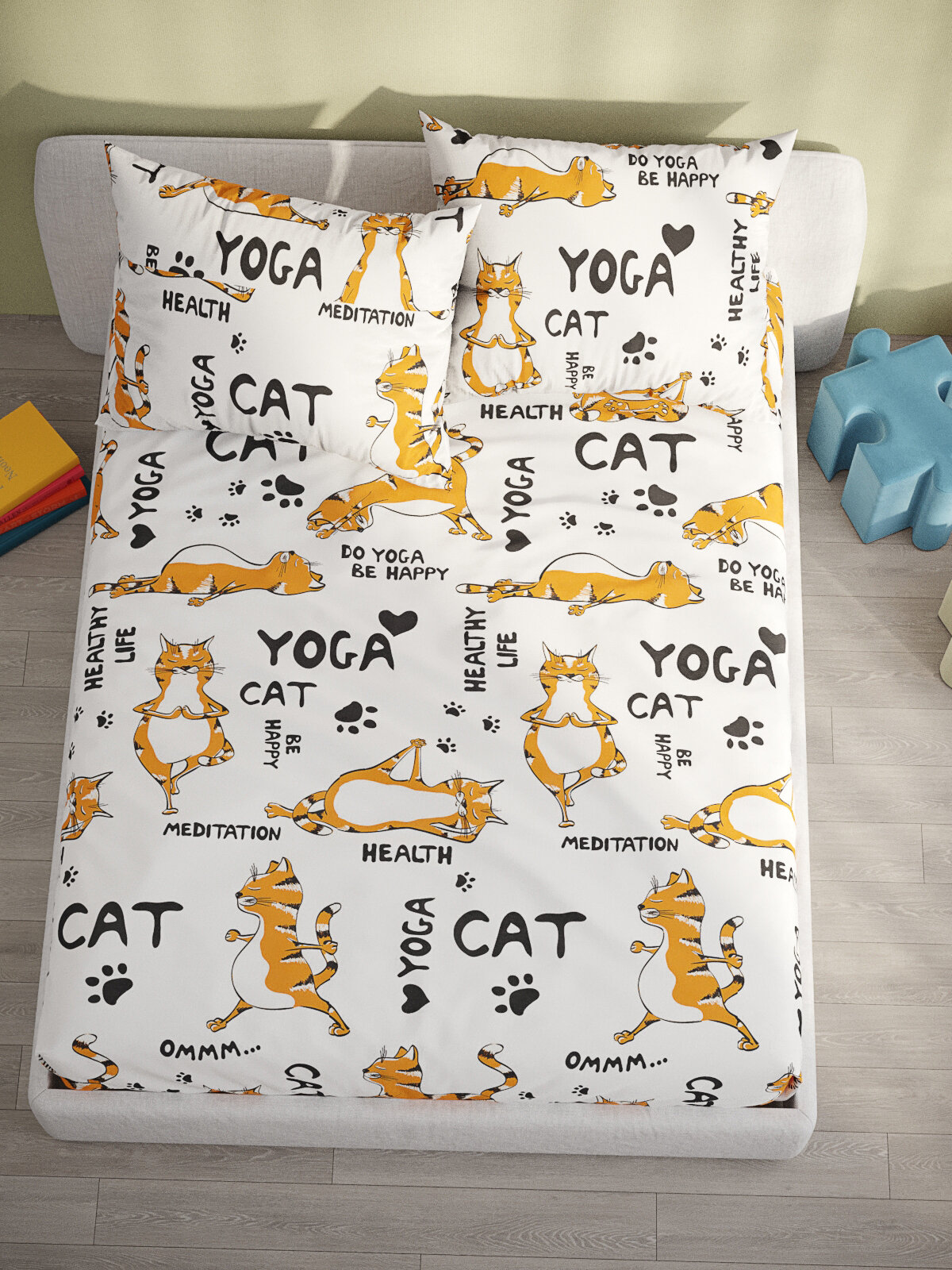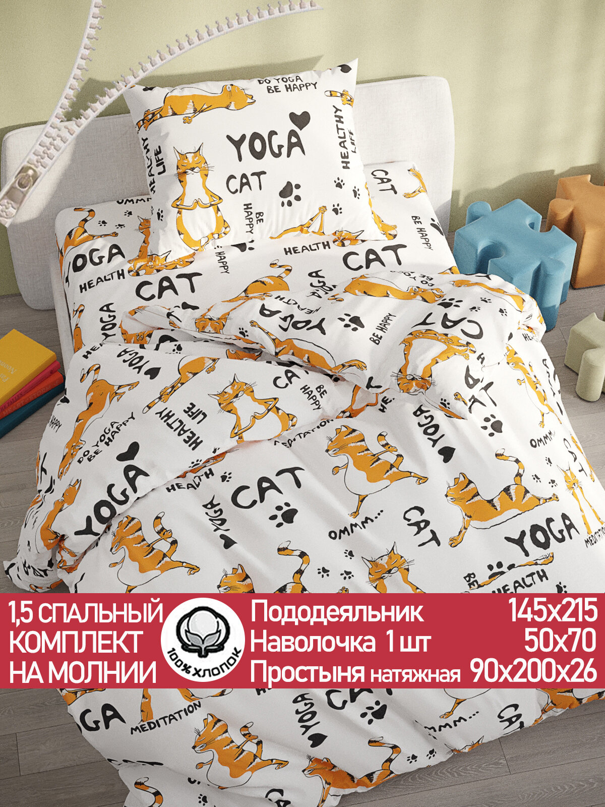 Постельное белье Сказка "Yogacat" 1,5-сп наволочка 50х70 1шт Простынь на резинке 90х200 см Пододеяльник 145х215 см информация: