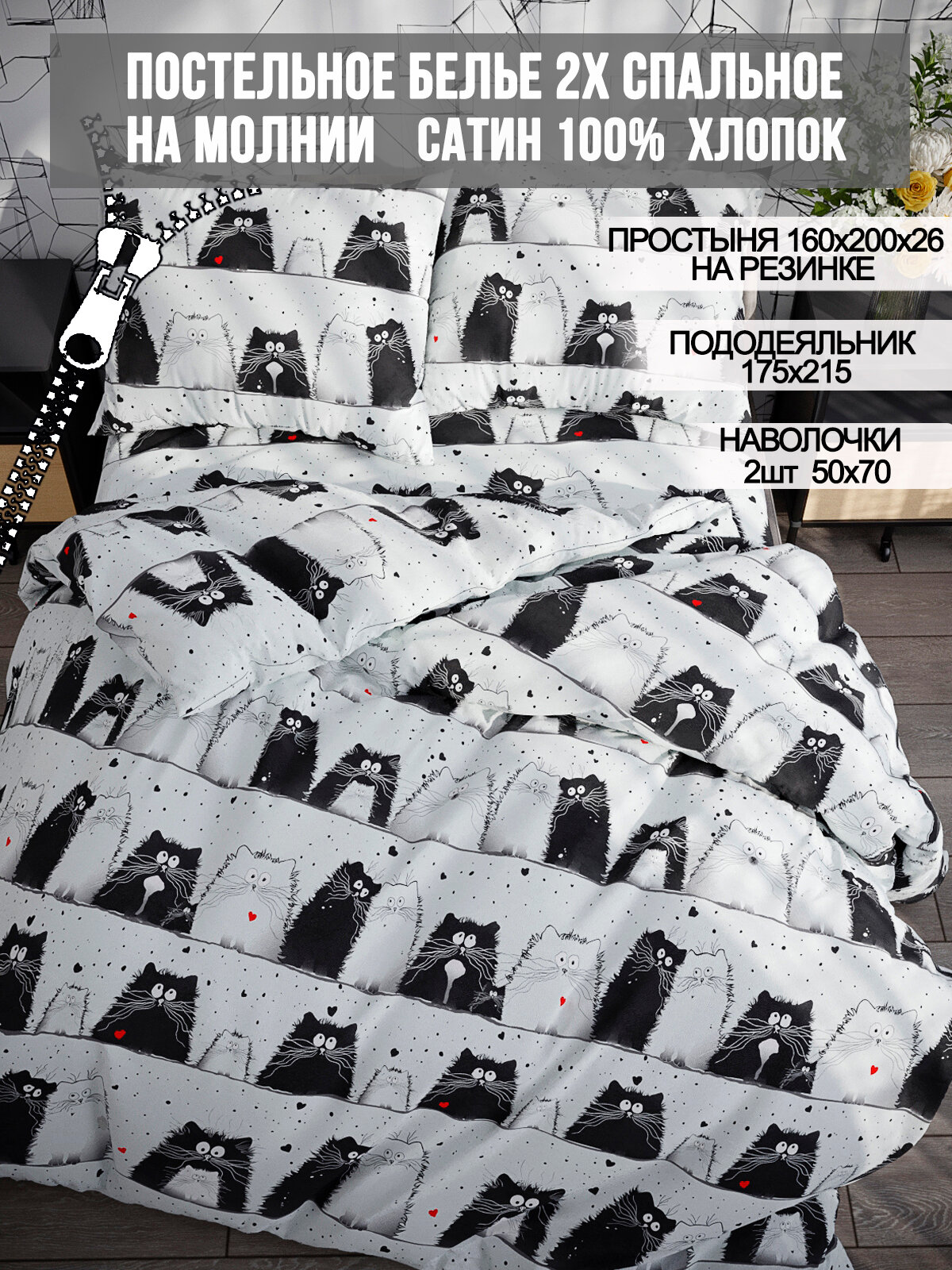 Постельное белье Milky Garden "Tomcat" 2-спальное, сатин, хлопок 100%, наволочки 2шт, простынь на резинке информация: