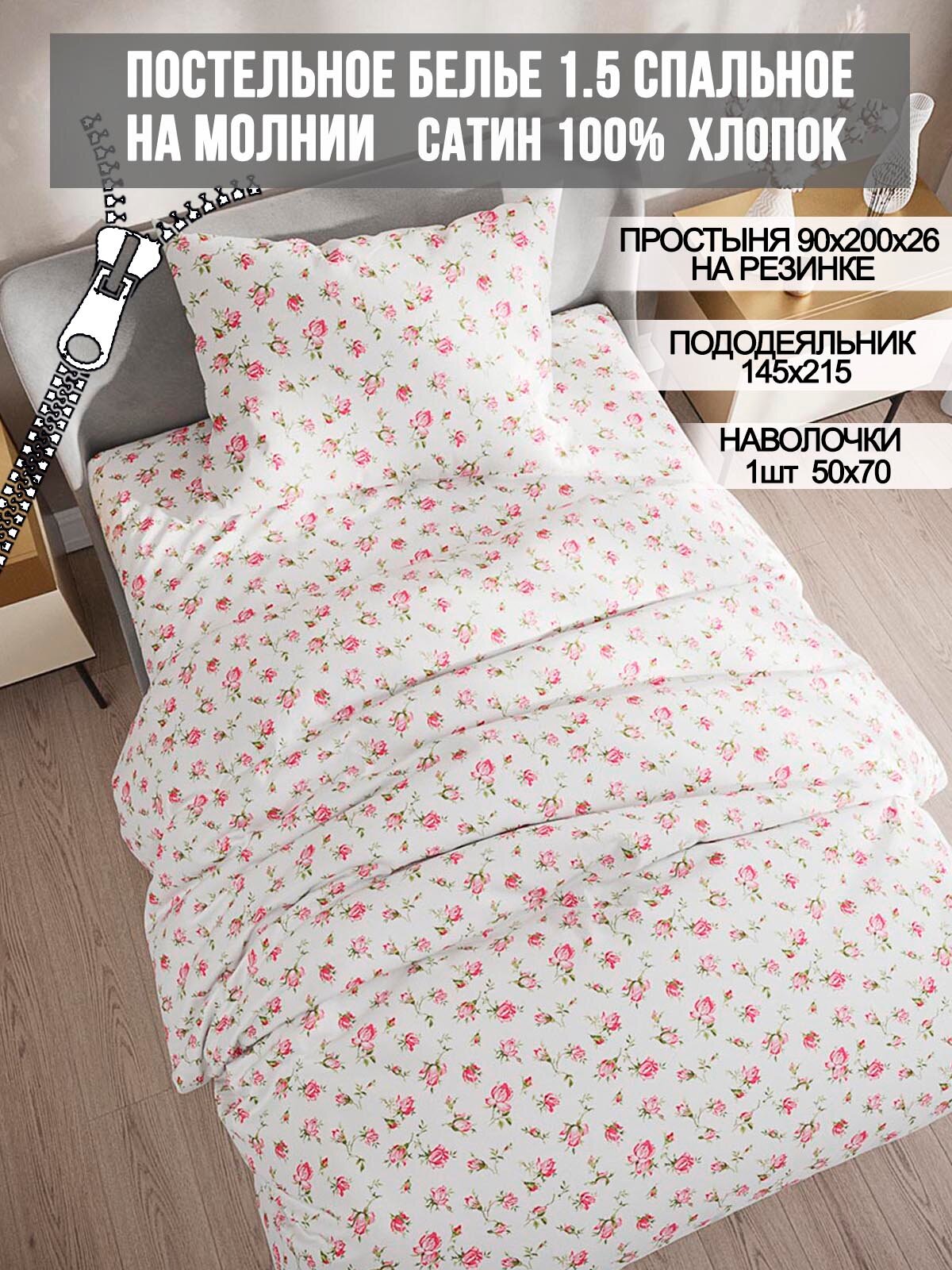 10 цен на Постельное белье Milky Garden "Розы" 1,5-сп, наволочка 50х70 1шт, простынь на резинке 90х200 см, пододеяльник 145х215 см