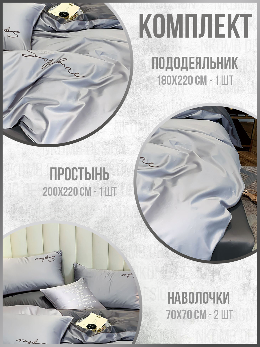 Постельное бельё, 2.0-х спальное,"Mency"Сатин, Жатка серый информация: