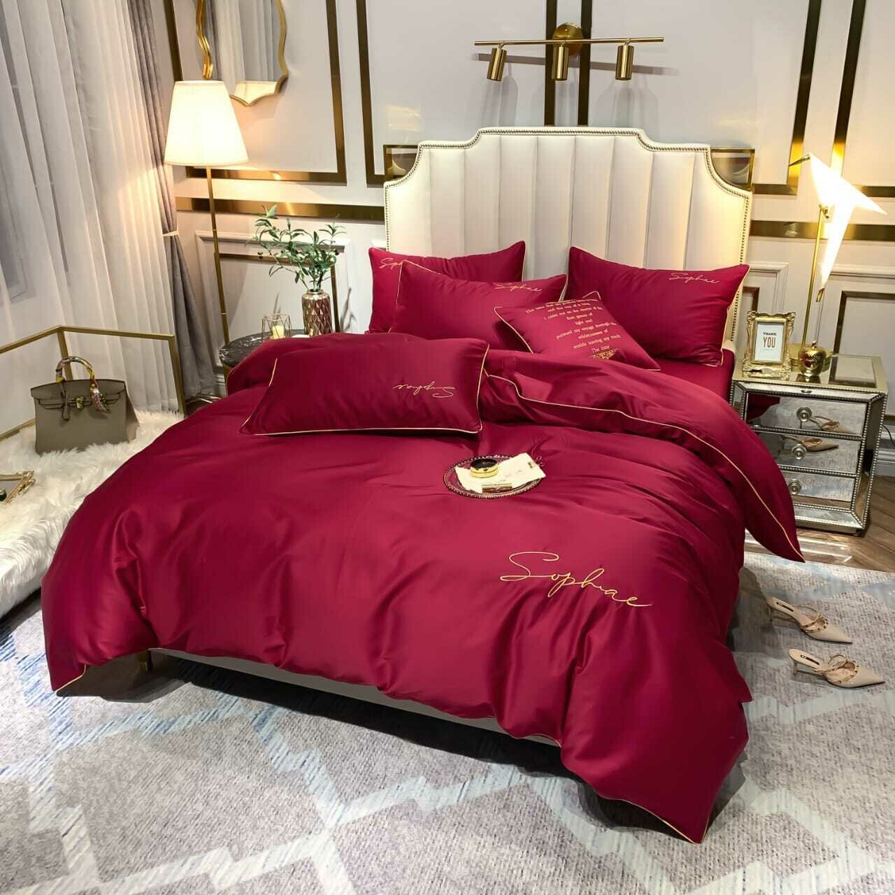 10 цен на Постельное бельё, 2.0-х спальное,"Mency"Сатин, Жатка, Красный коралл