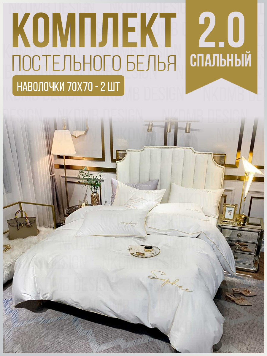 Постельное бельё, 2.0-х спальное,"Mency"Сатин, Жатка, Белый информация: