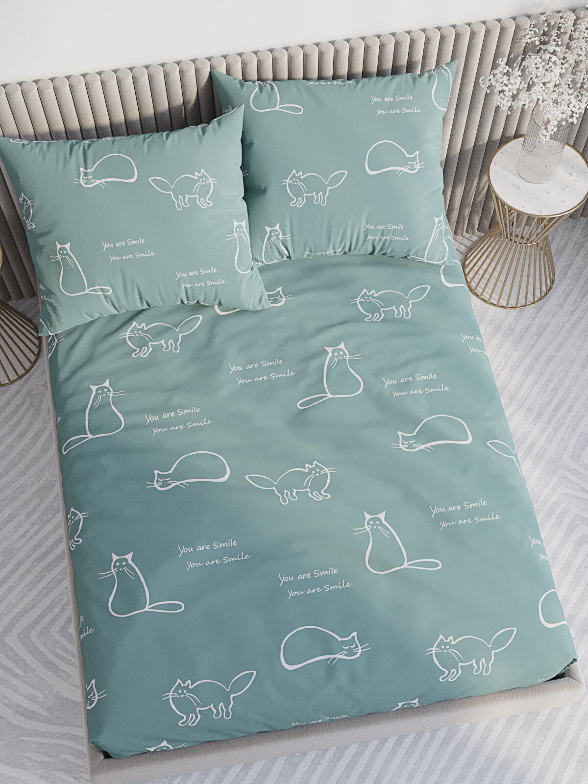 Постельное белье Milky Garden "котики (мята)" 1,5-сп, наволочка 50х70 1шт, простынь 150х215 см, пододеяльник 145х215 см 2 750 ₽