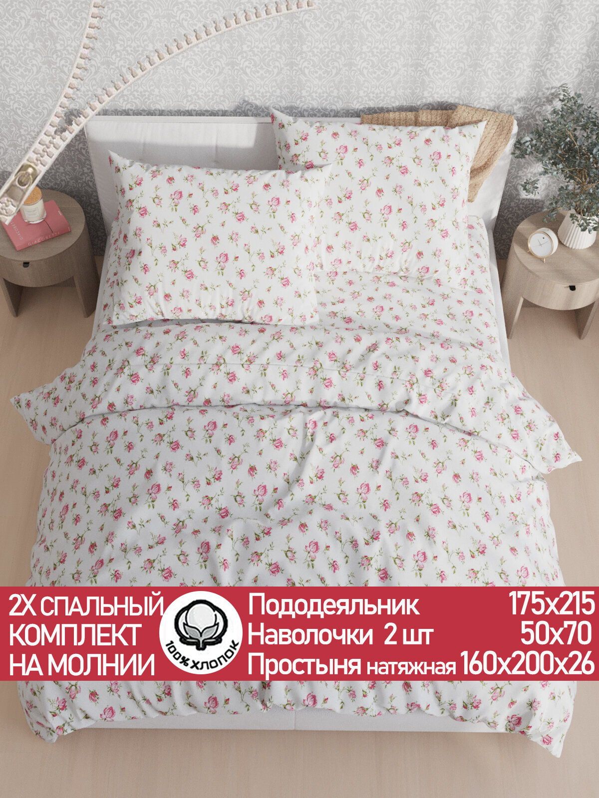 10 цен на Постельное белье Сказка Сатин "Розы" 2-спальный наволочки 50х70 2шт Простынь на резинке 160х200 см Пододеяльник 175х215 см