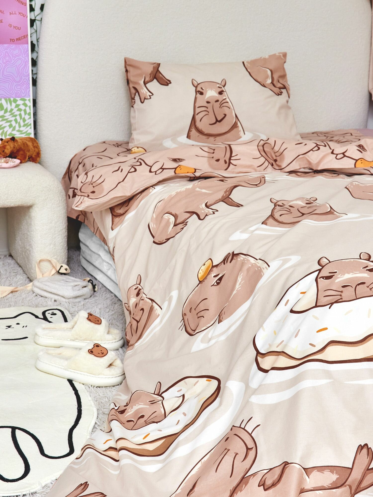 Постельное белье 1.5 спальное Crazy Getup, Перкаль, нав. 50х70, Capybara 1 799 ₽