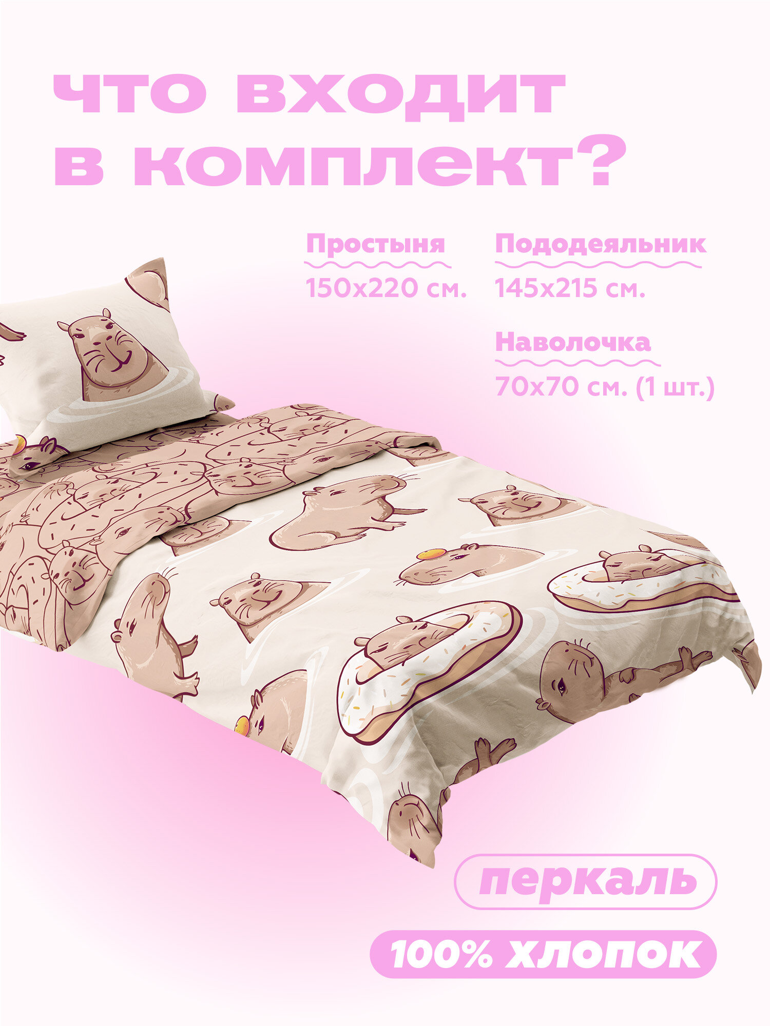 10 цен на Постельное белье 1.5 спальное Crazy Getup, Перкаль, нав. 70х70, Capybara
