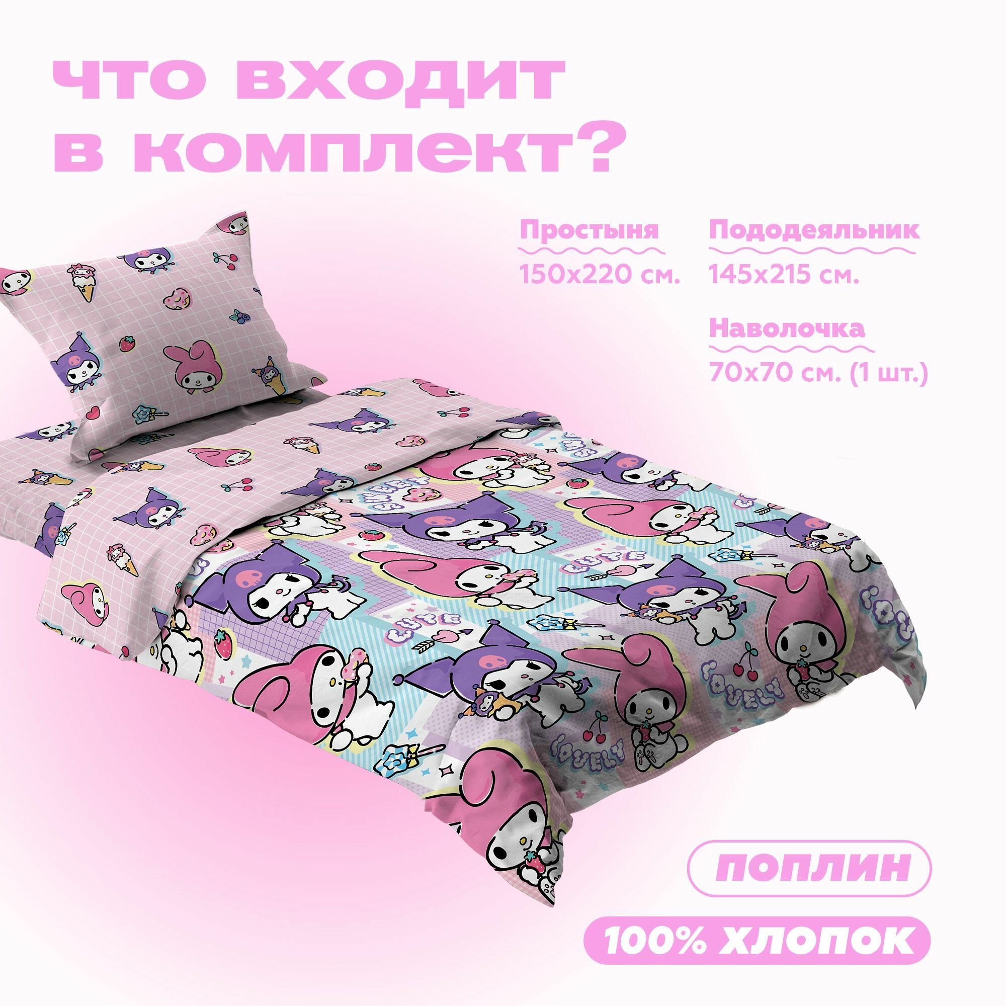 Постельное белье 1.5 спальное Crazy Getup, Поплин, нав. 50х70, Мелоди и Куроми (Gothic Kuromi) 1 829 ₽