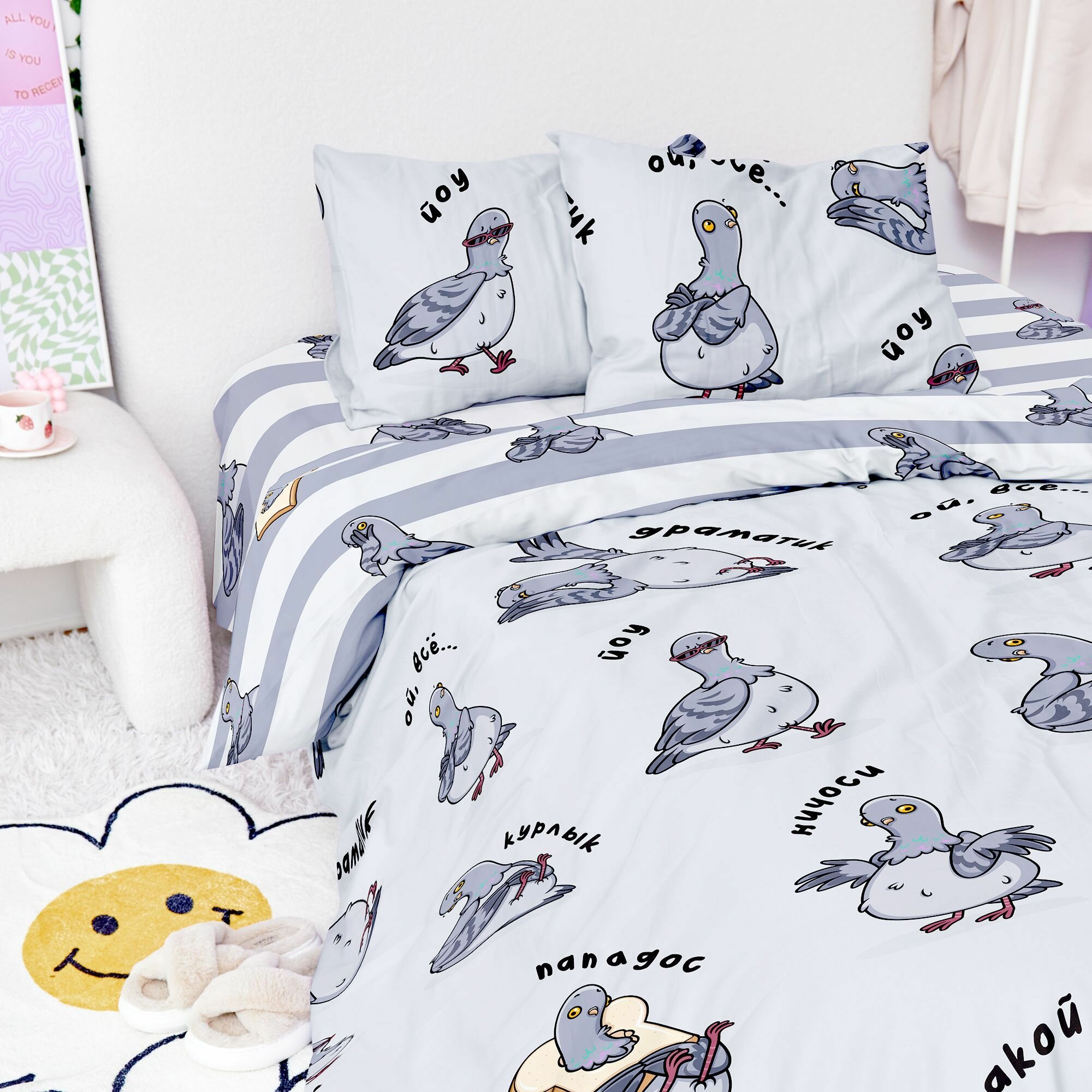 Crazy Getup, Комплект постельного белья 1 5 спальный, Поплин, 1 нав. 70х70, Гуси гуси 2 300 ₽