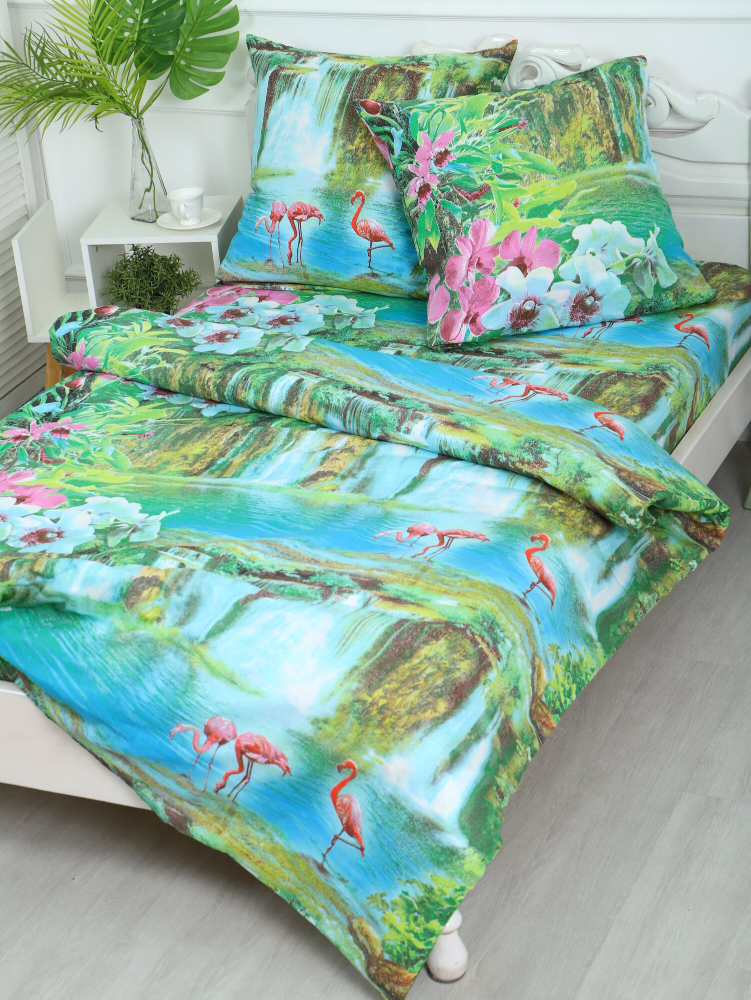 Комплект постельного белья "Фламинго на Закате" 1,5-спальный, бязь 1 550 ₽