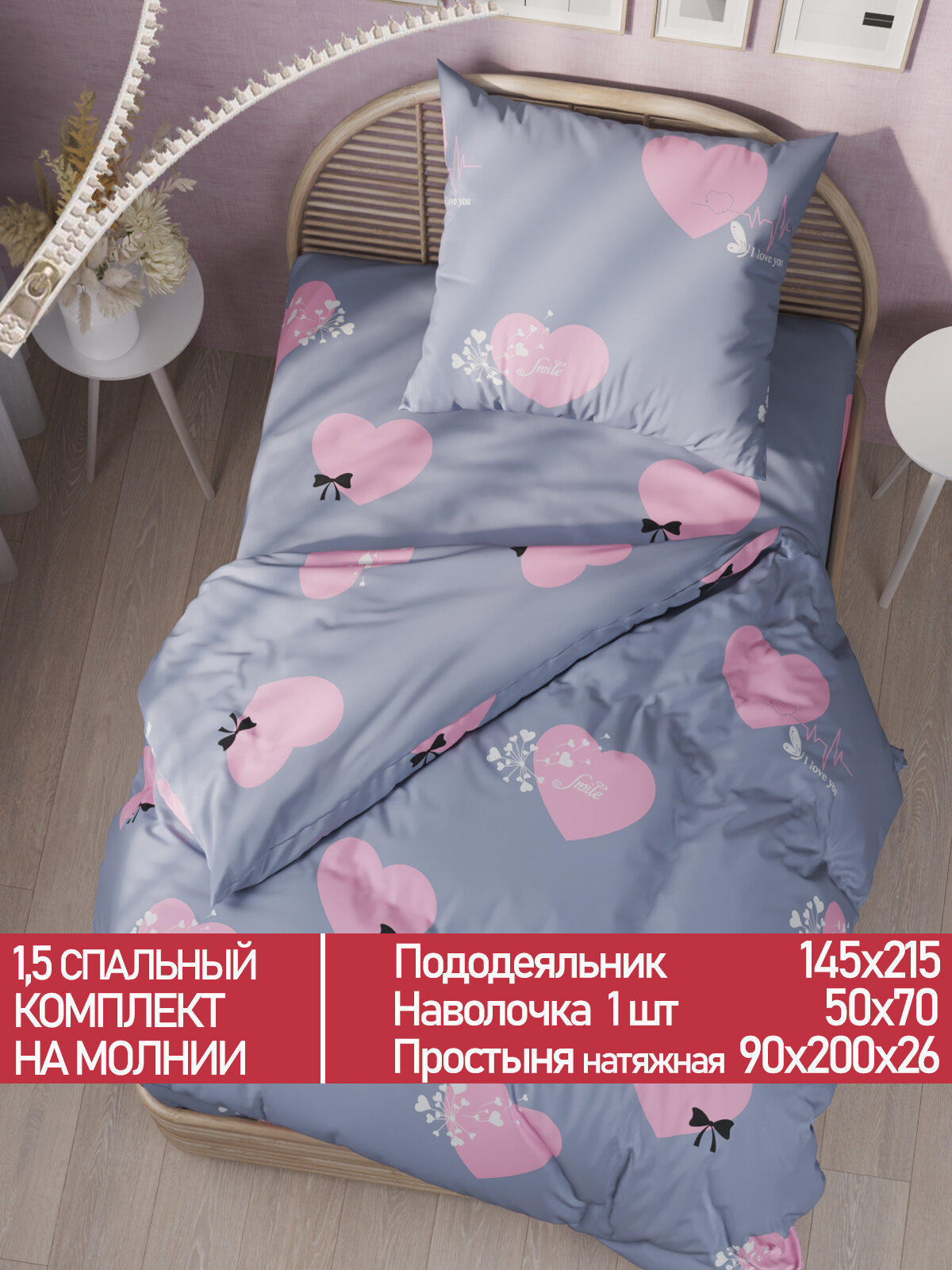 Постельное белье Мечта "Loved" 1,5-сп наволочка 50х70 1шт Простынь на резинке 90х200 см Пододеяльник 145х215 см информация:
